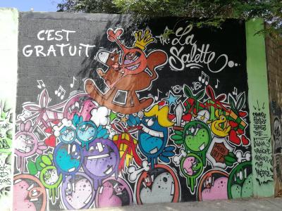 L'oeuvre est de type graffiti. Vous pouvez l'admirer dans la ville de Saint-Leu en Réunion et plus précisément ici : 7 Rue Haute, Saint-Leu, Réunion.