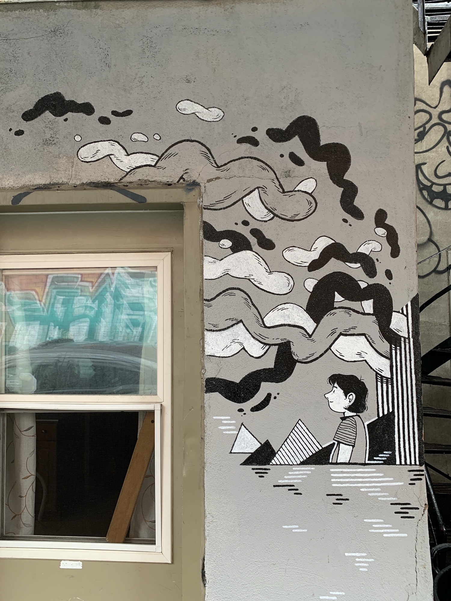 L’oeuvre est de type graffiti. Vous pouvez l’admirer dans la ville de Montréal en Canada et plus précisément ici : 17 Rue Saint Cuthbert, Montréal, QC H2W 1L2, Canada.