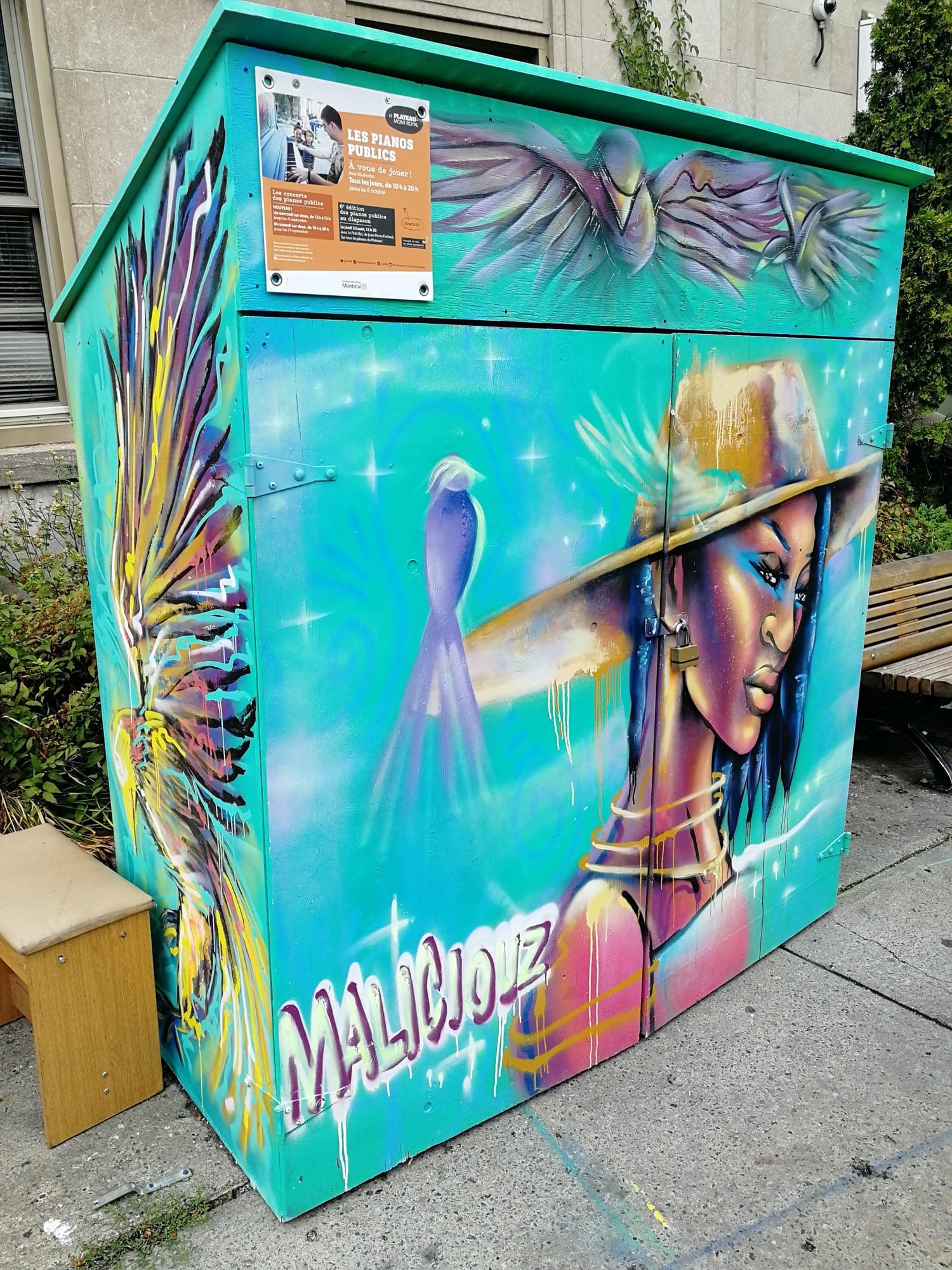 L’oeuvre est de type graffiti. Vous pouvez l’admirer dans la ville de Montréal en Canada et plus précisément ici : du Mont-Royal / Henri-Julien, Montréal, QC H2T 1P7, Canada.