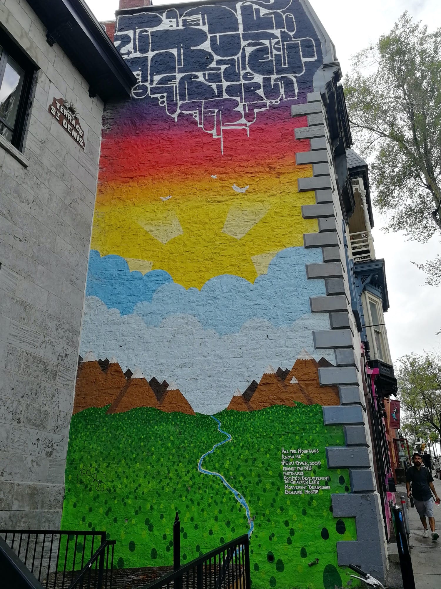 L’oeuvre est de type graffiti. Vous pouvez l’admirer dans la ville de Montréal en Canada et plus précisément ici : 2070 Rue Saint-Denis, Montréal, QC H2X 3L1, Canada.