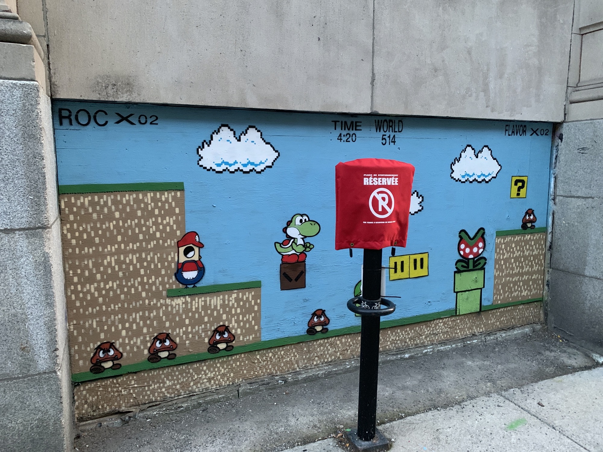L’oeuvre Mario est de type graffiti. Vous pouvez l’admirer dans la ville de Montréal en Canada et plus précisément ici : 1255 Rue de Bullion, Montréal, QC H2X 0B9, Canada.