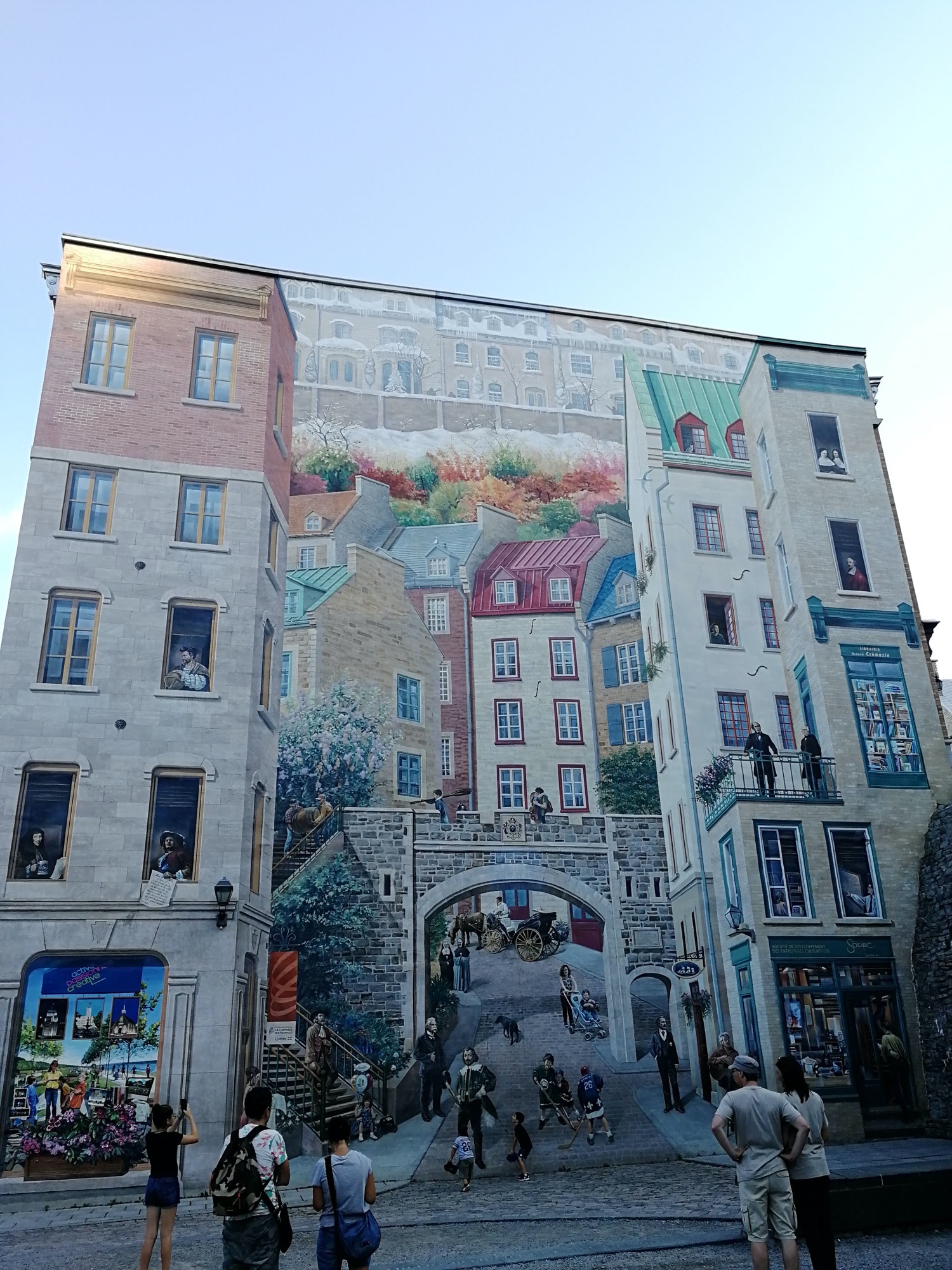 L’oeuvre est de type graffiti. Vous pouvez l’admirer dans la ville de Québec en Canada et plus précisément ici : 40 Rue Notre-Dame, Québec, QC G1K 8A5, Canada.