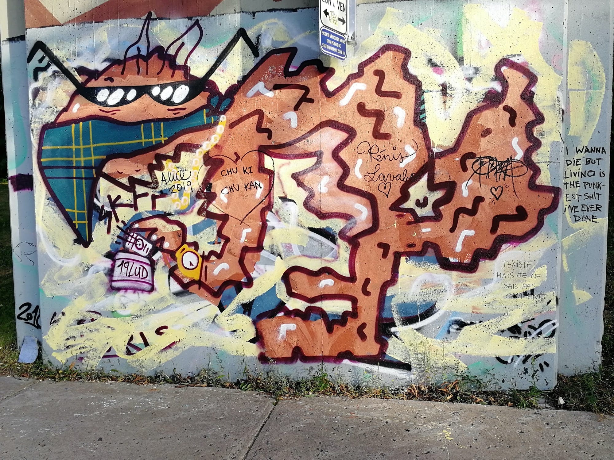 L’oeuvre est de type graffiti. Vous pouvez l’admirer dans la ville de Québec en Canada et plus précisément ici : 850 Rue Saint-Vallier E, Québec, QC G1K 3R4, Canada.