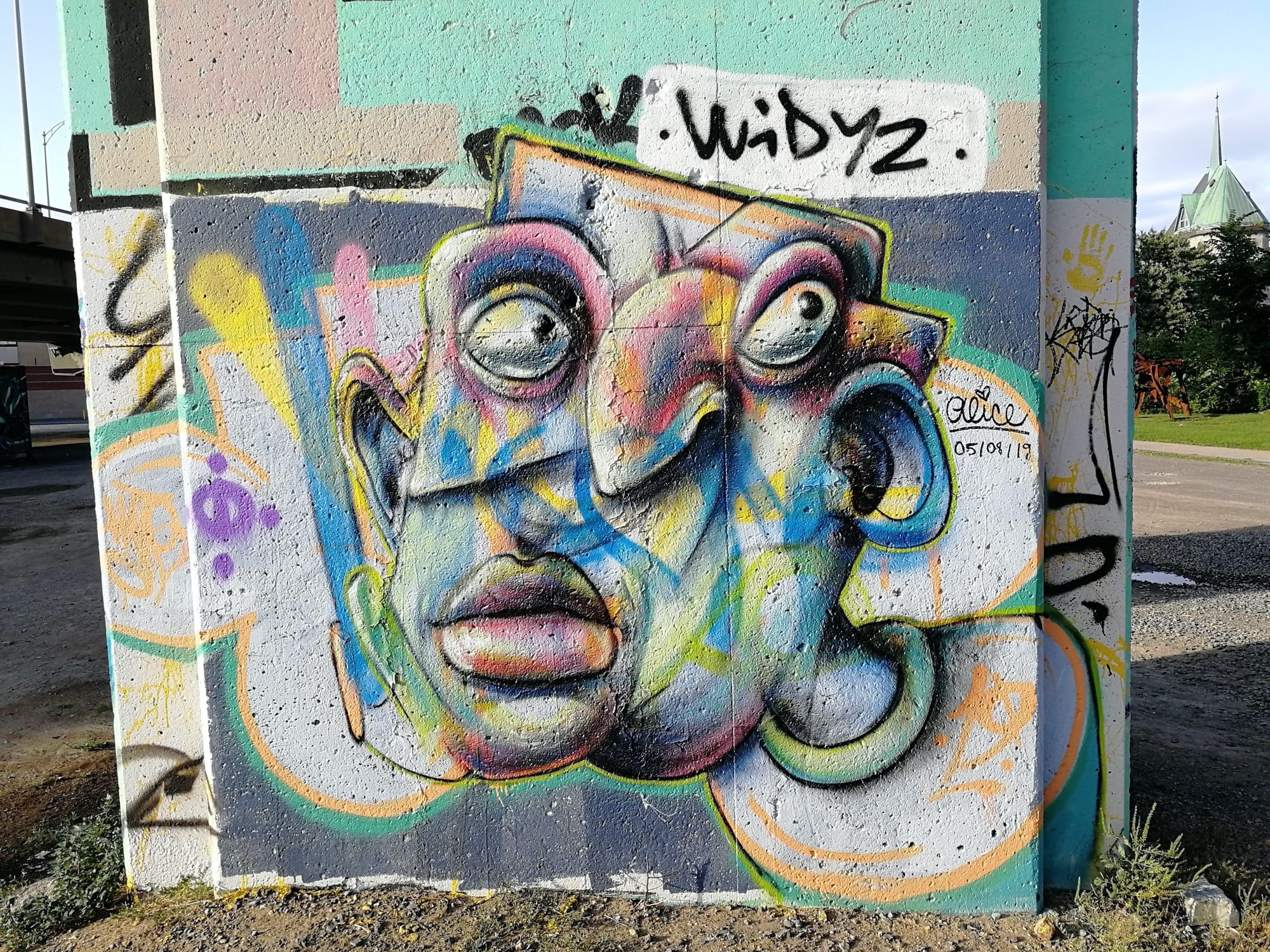 L’oeuvre est de type graffiti. Vous pouvez l’admirer dans la ville de Québec en Canada et plus précisément ici : 400-450 Rue de l'Éperon, Québec, QC G1K 8T2, Canada.