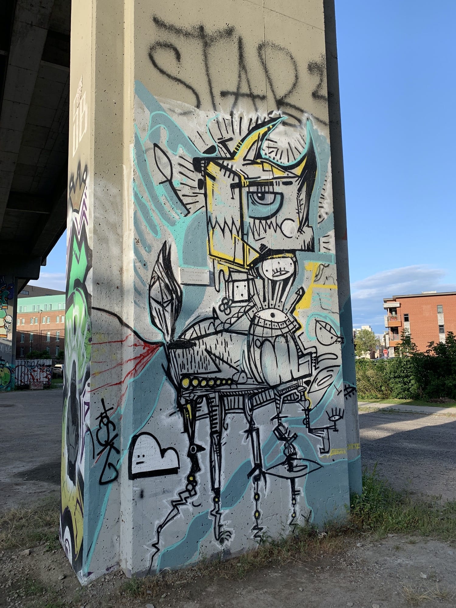 L’oeuvre est de type graffiti. Vous pouvez l’admirer dans la ville de Québec en Canada et plus précisément ici : 874 Rue Saint-Vallier E, Québec, QC G1K 3R4, Canada.