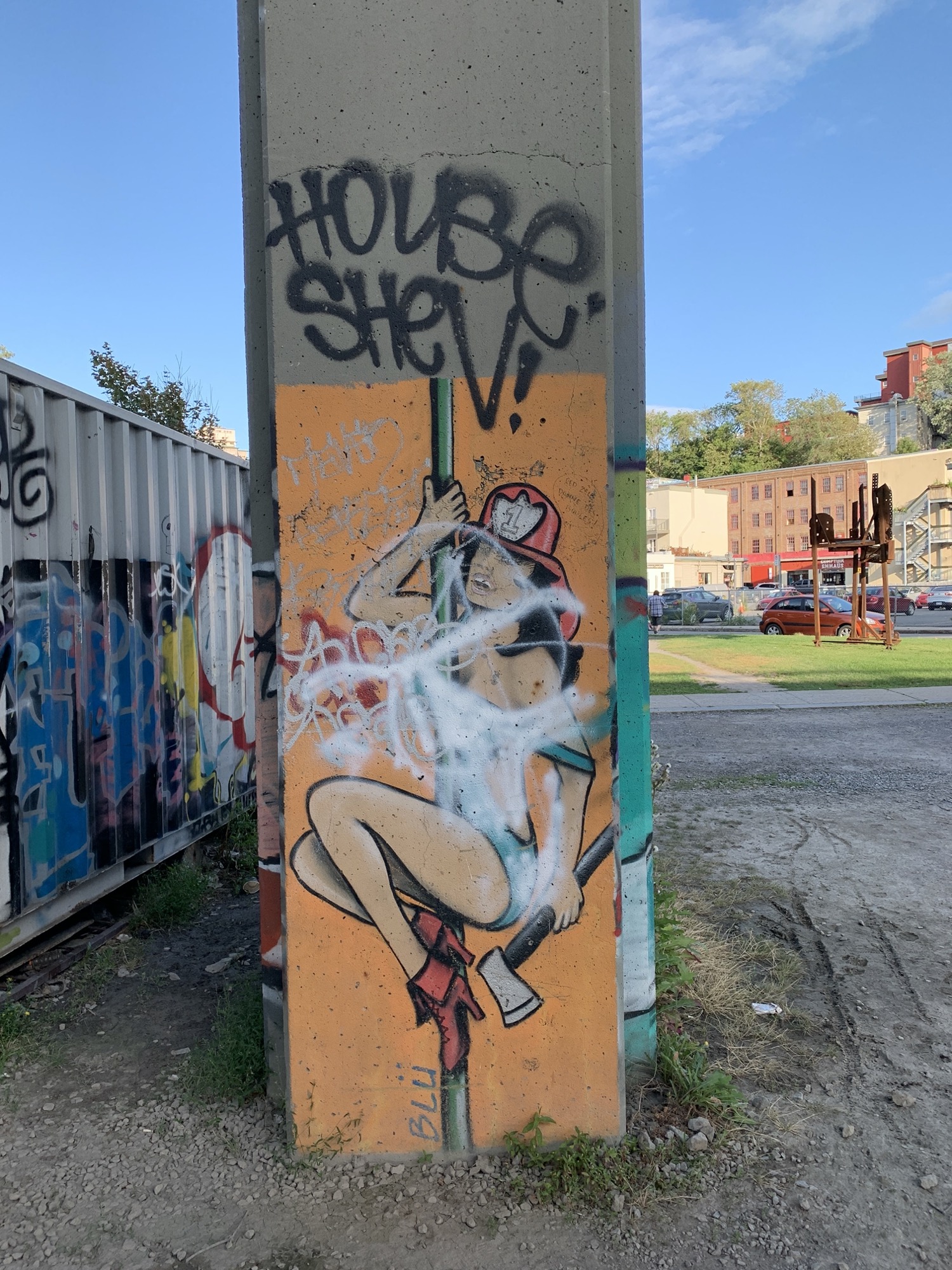 L’oeuvre est de type graffiti. Vous pouvez l’admirer dans la ville de Québec en Canada et plus précisément ici : 400-450 Rue de l'Éperon, Québec, QC G1K 8T2, Canada.