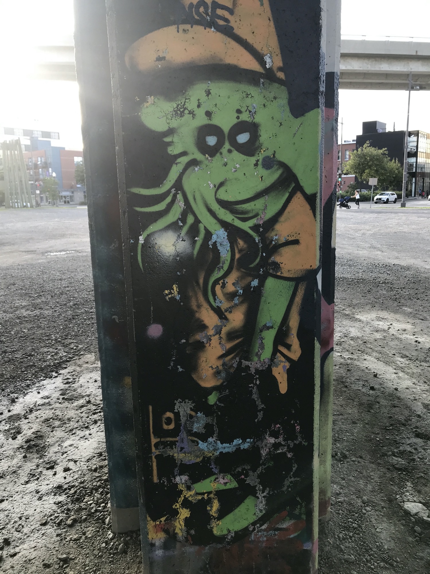 L’oeuvre est de type graffiti. Vous pouvez l’admirer dans la ville de Québec en Canada et plus précisément ici : St-Dominique, Québec, QC G1K, Canada.