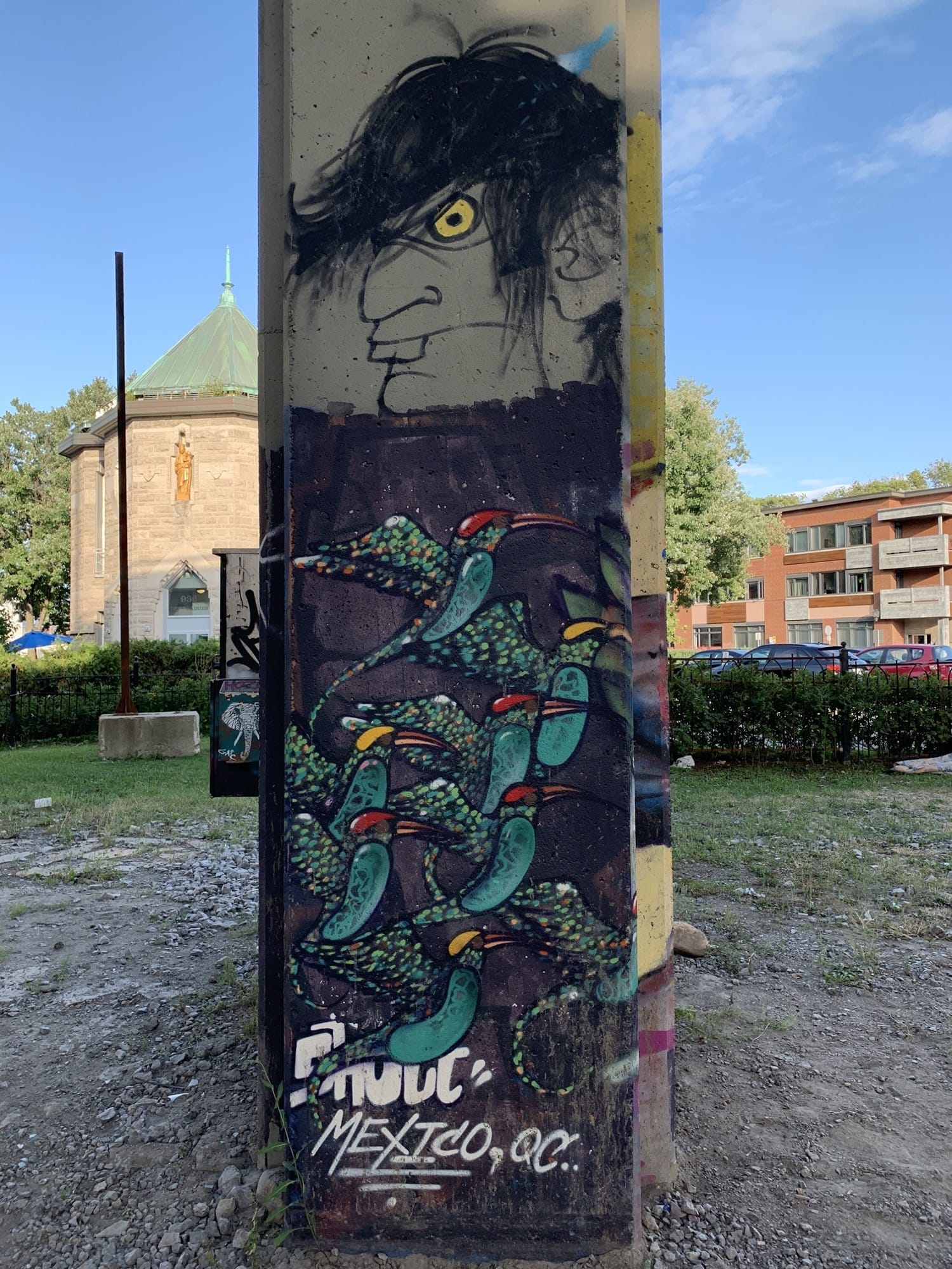 L’oeuvre est de type graffiti. Vous pouvez l’admirer dans la ville de Québec en Canada et plus précisément ici : 400-450 Rue de l'Éperon, Québec, QC G1K 8T2, Canada.