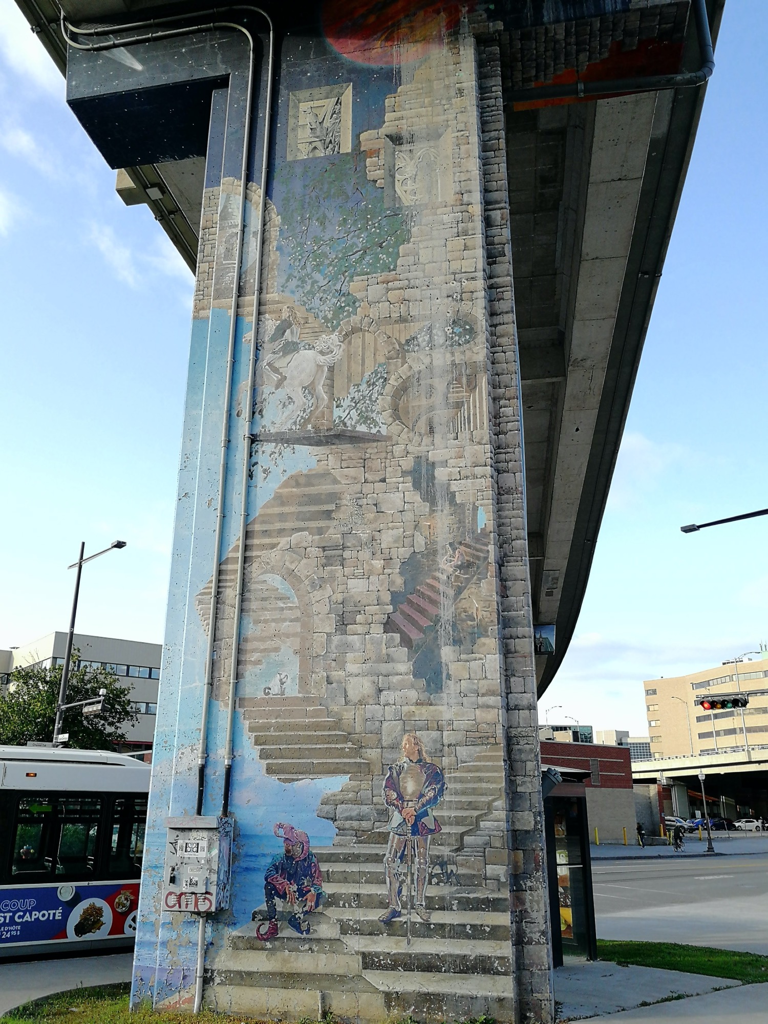 L’oeuvre est de type graffiti. Vous pouvez l’admirer dans la ville de Québec en Canada et plus précisément ici : 37 Autoroute Dufferin-Montmorency, Québec, QC G1K 3K8, Canada.