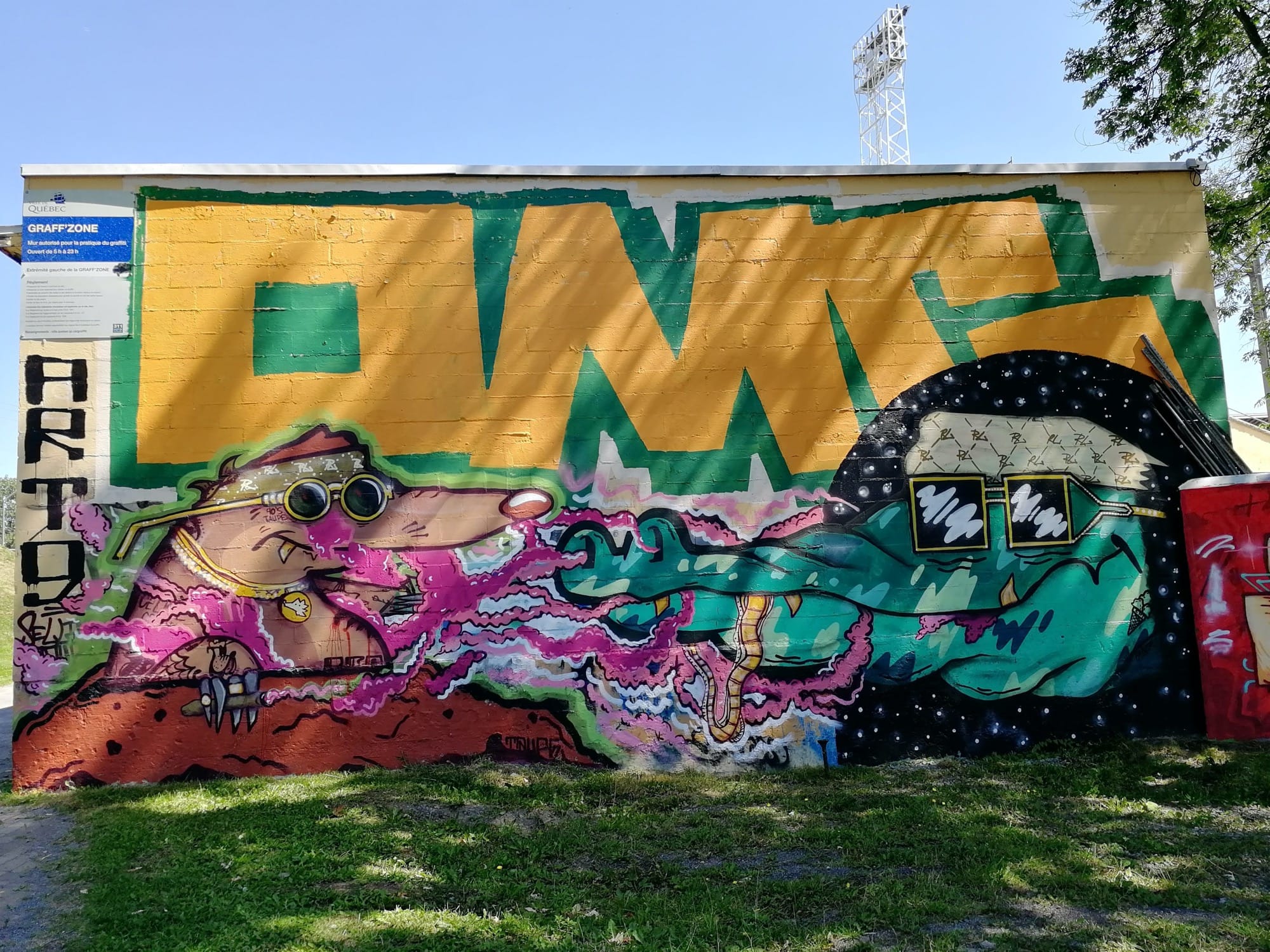 L’oeuvre est de type graffiti. Vous pouvez l’admirer dans la ville de Québec en Canada et plus précisément ici : 1938 Rue du Cardinal-Maurice-Roy, Québec, QC G1K 8Z1, Canada.