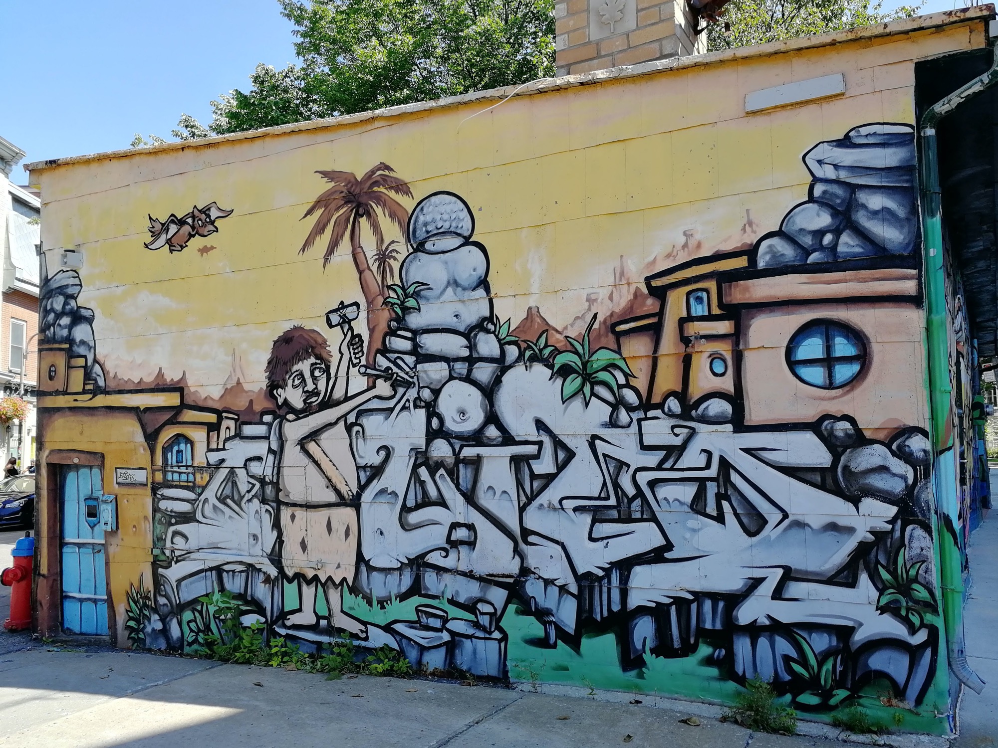 L’oeuvre est de type graffiti. Vous pouvez l’admirer dans la ville de Québec en Canada et plus précisément ici : 20 Boulevard Charest O, Québec, QC G1K 1X2, Canada.