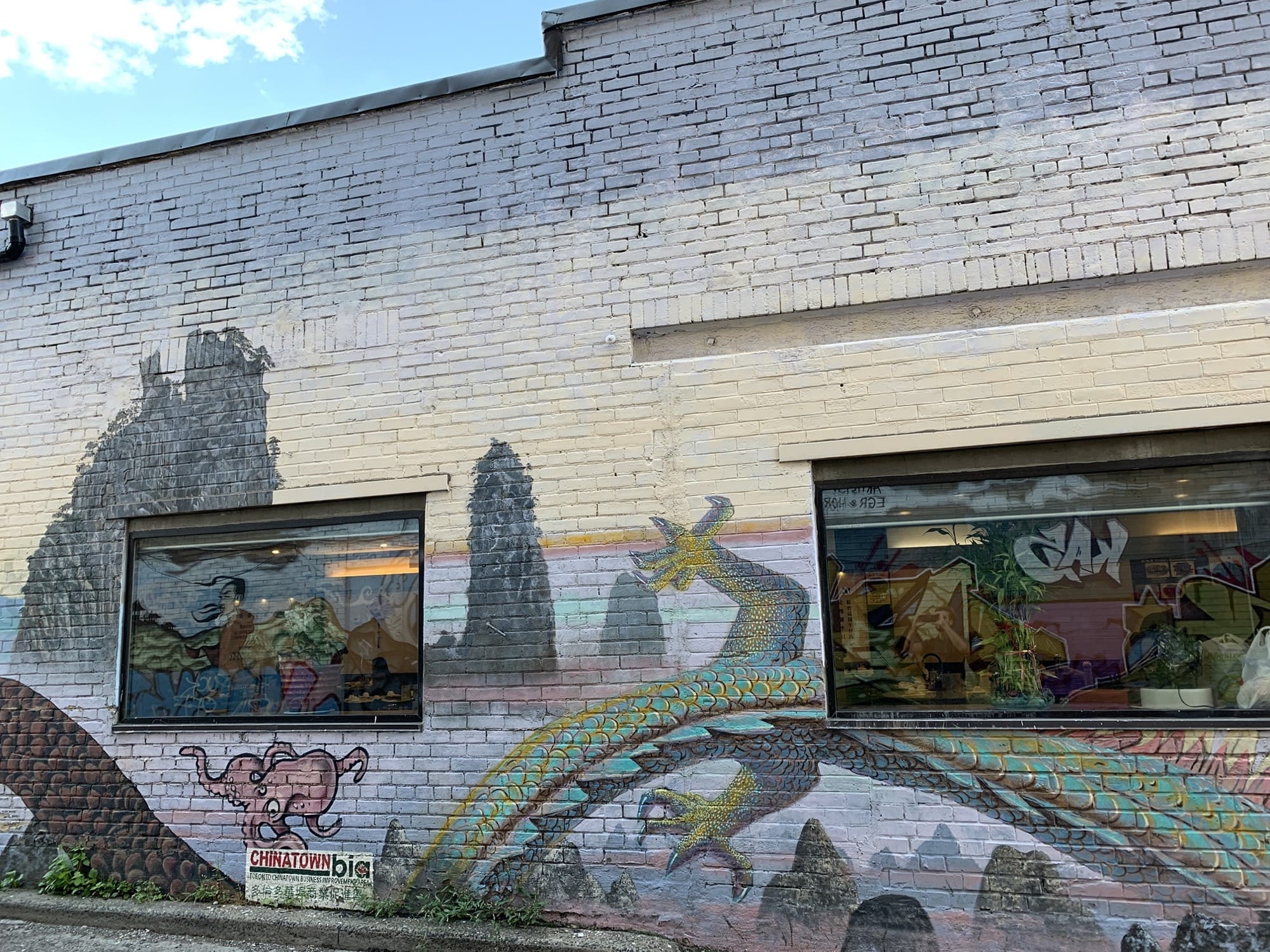 L’oeuvre est de type graffiti. Vous pouvez l’admirer dans la ville de Toronto en Canada et plus précisément ici : 484 Dundas St W, Toronto, ON M5T 1G9, Canada.