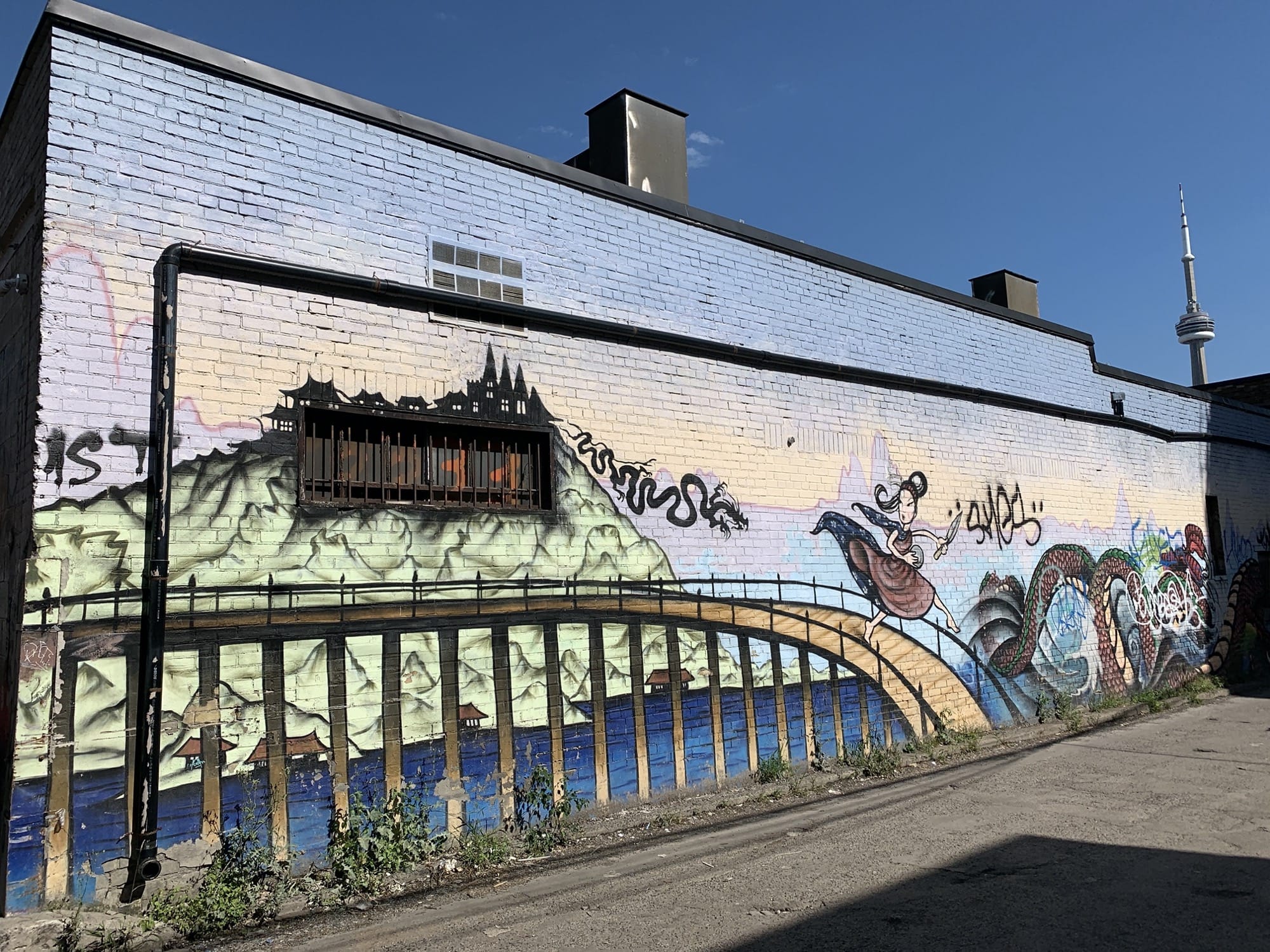 L’oeuvre est de type graffiti. Vous pouvez l’admirer dans la ville de Toronto en Canada et plus précisément ici : 482 A Dundas St W, Toronto, ON M5T 1G9, Canada.