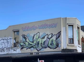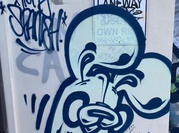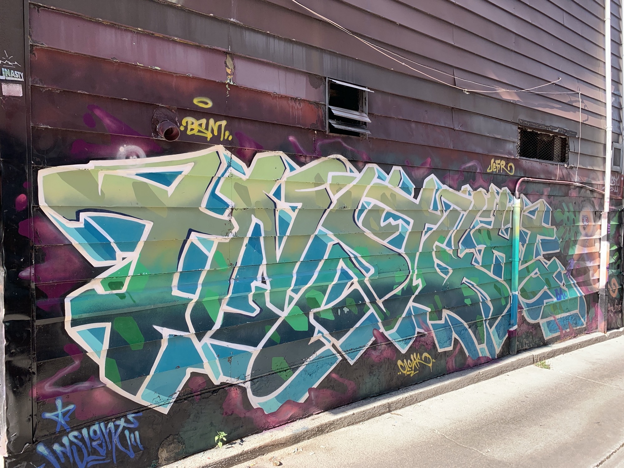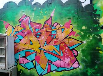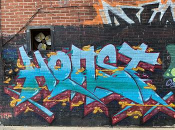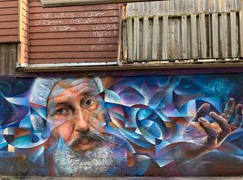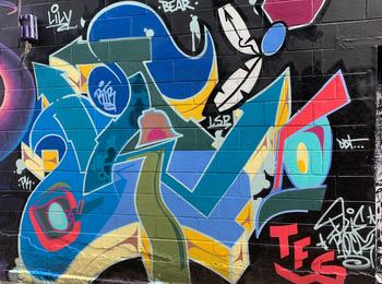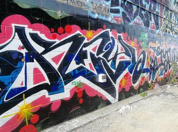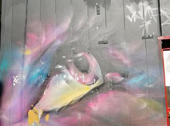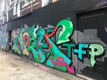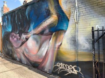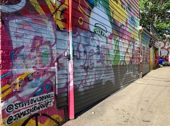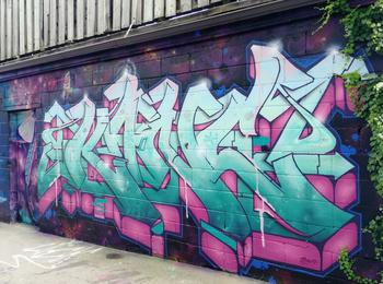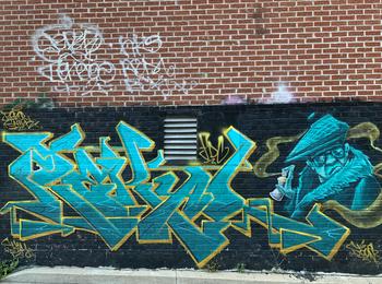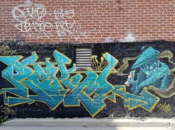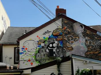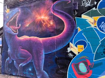 L’oeuvre est de type graffiti. Vous pouvez l’admirer dans la ville de Toronto en Canada et plus précisément ici : 46 Kensington Ave, Toronto, ON M5T 2K1, Canada.