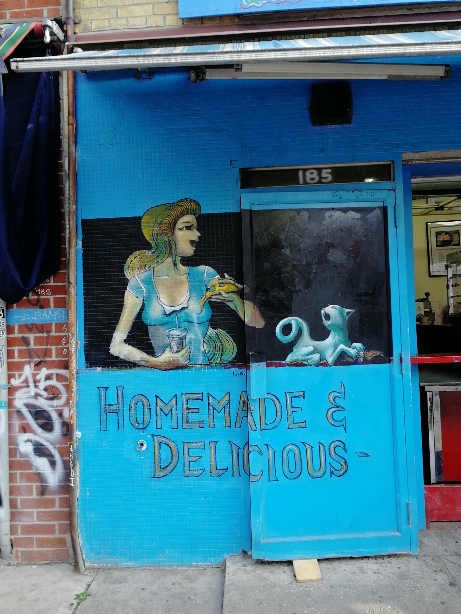 L’oeuvre est de type graffiti. Vous pouvez l’admirer dans la ville de Toronto en Canada et plus précisément ici : 178 Baldwin St, Toronto, ON M5T 1L8, Canada.