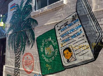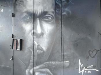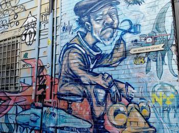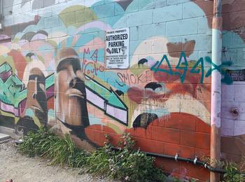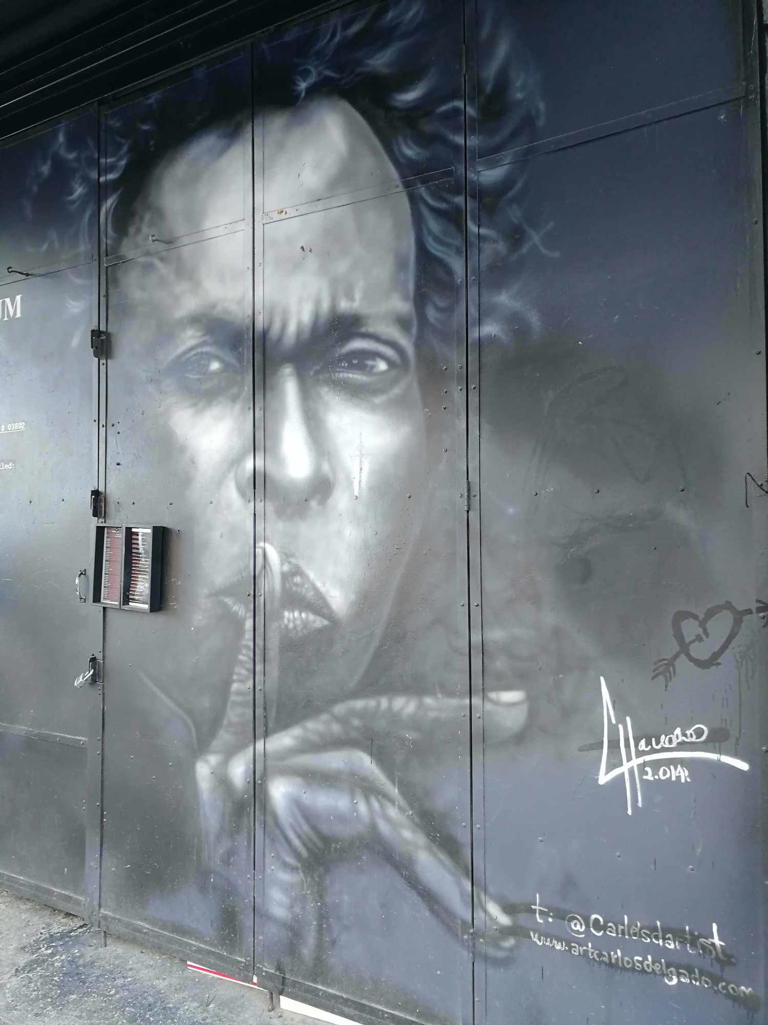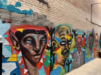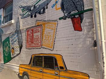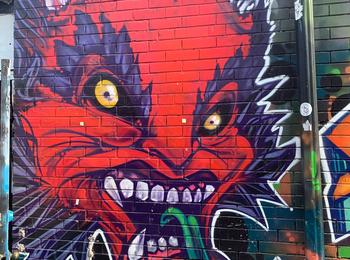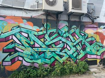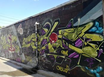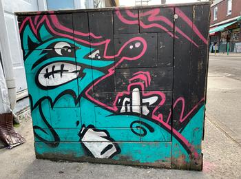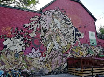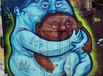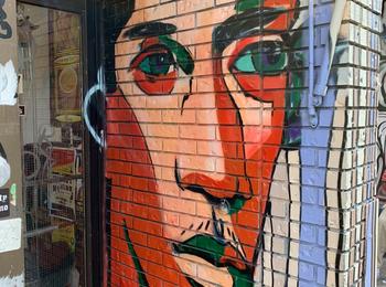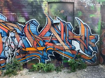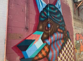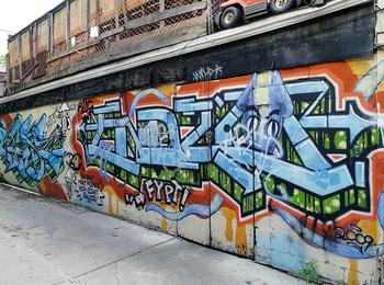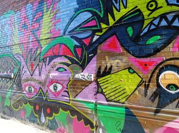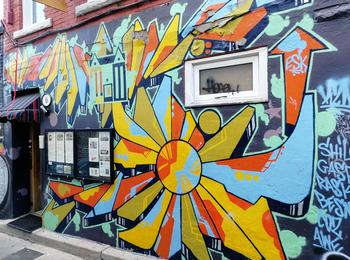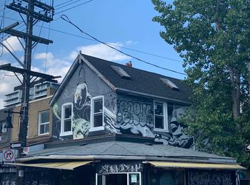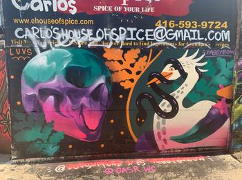 L’oeuvre est de type graffiti. Vous pouvez l’admirer dans la ville de Toronto en Canada et plus précisément ici : 249 Augusta Ave, Toronto, ON M5T 2L8, Canada.