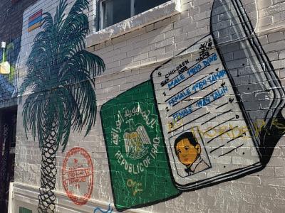 L'oeuvre est de type graffiti. Vous pouvez l'admirer dans la ville de Toronto en Canada et plus précisément ici : 275 Augusta Ave, Toronto, ON M5T 2M1, Canada.
