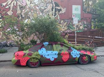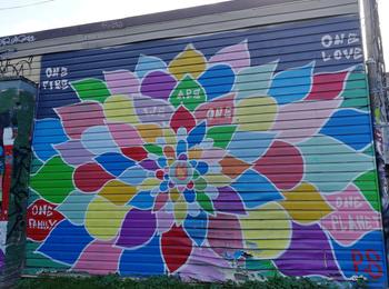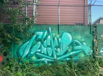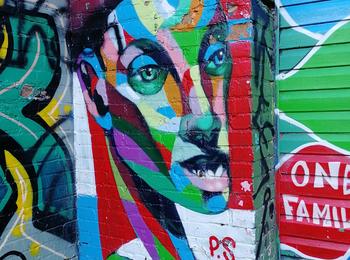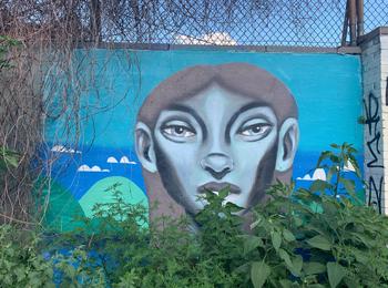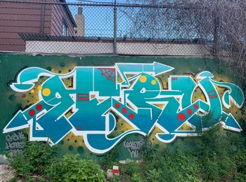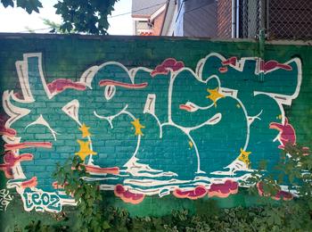 L’oeuvre est de type graffiti. Vous pouvez l’admirer dans la ville de Toronto en Canada et plus précisément ici : 273 Augusta Ave, Toronto, ON M5T 2M1, Canada.