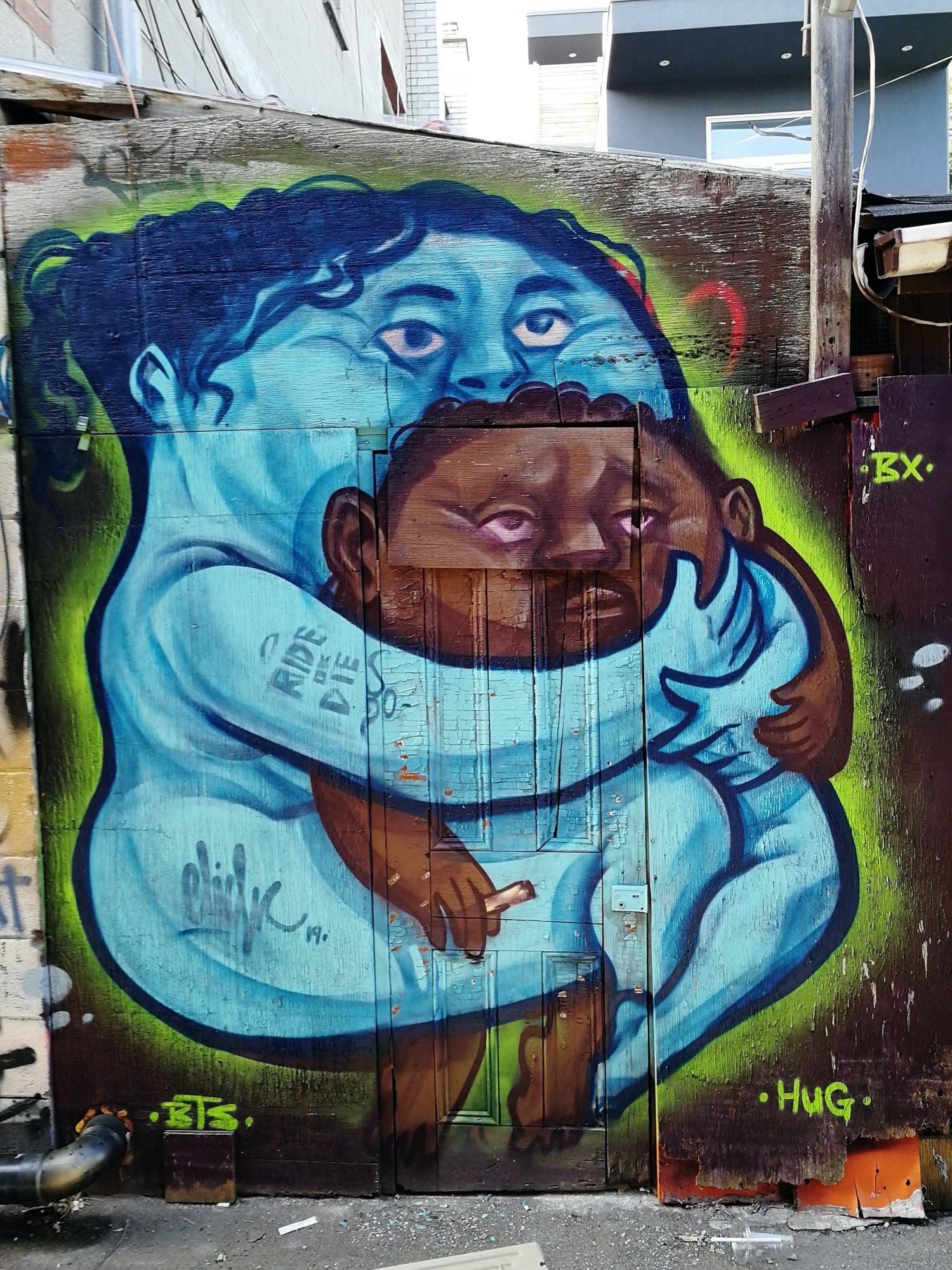 L’oeuvre est de type graffiti. Vous pouvez l’admirer dans la ville de Toronto en Canada et plus précisément ici : 273 Augusta Ave, Toronto, ON M5T 2M1, Canada.