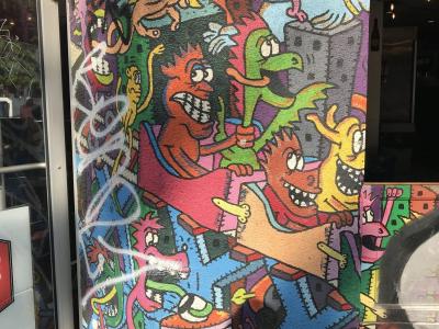 L'oeuvre est de type graffiti. Vous pouvez l'admirer dans la ville de Toronto en Canada et plus précisément ici : 285 Augusta Ave, Toronto, ON M5T 2M1, Canada.