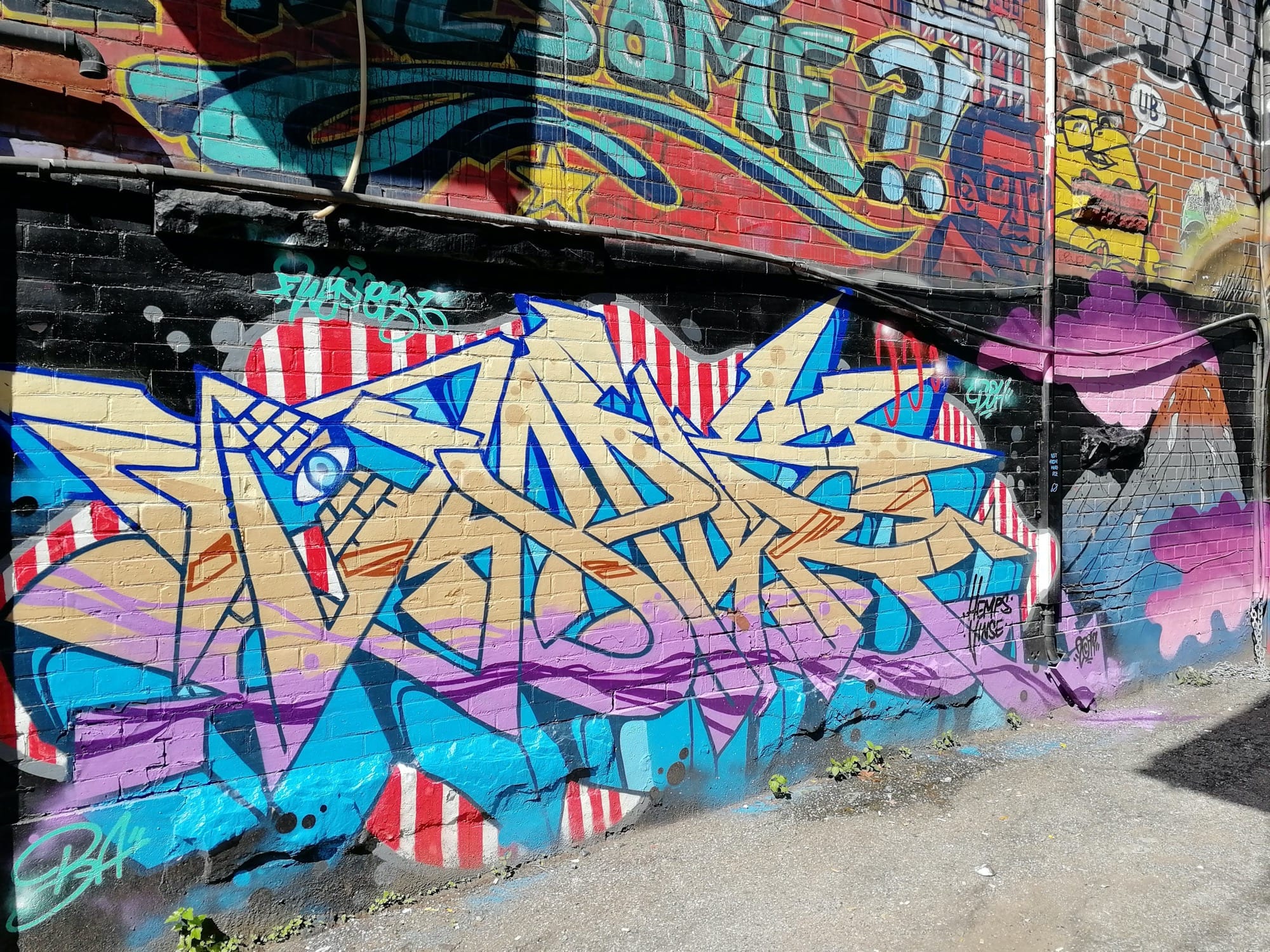 L’oeuvre est de type graffiti. Vous pouvez l’admirer dans la ville de Toronto en Canada et plus précisément ici : 547 Queen St W, Toronto, ON M5V 2B6, Canada.