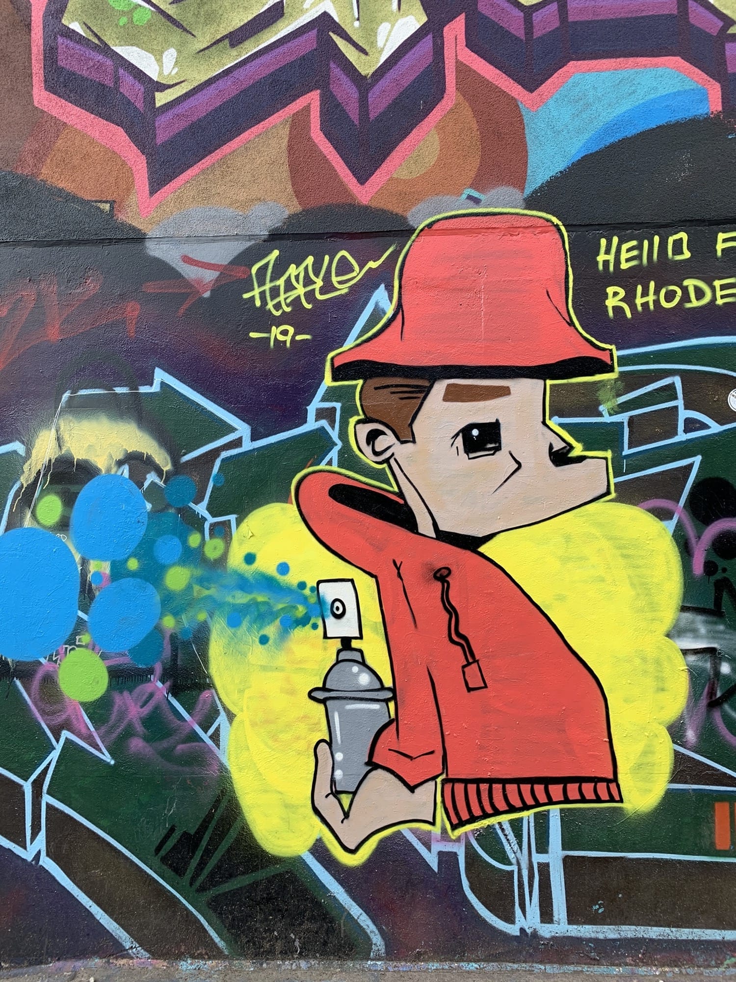 L’oeuvre est de type graffiti. Vous pouvez l’admirer dans la ville de Toronto en Canada et plus précisément ici : 496 Richmond St W, Toronto, ON M5V 3N4, Canada.