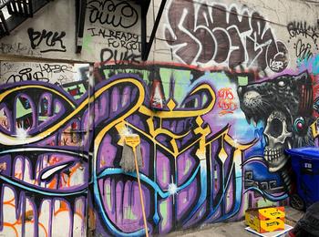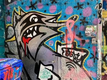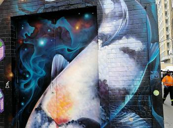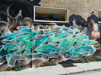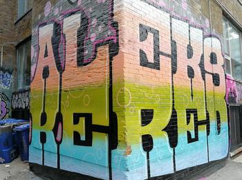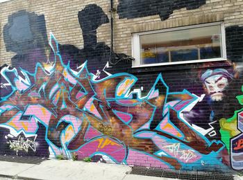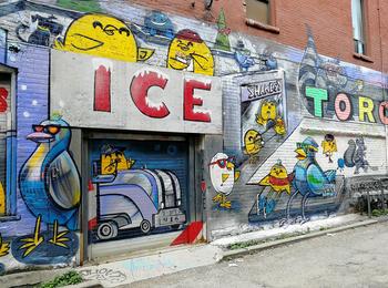 L’oeuvre est de type graffiti. Vous pouvez l’admirer dans la ville de Toronto en Canada et plus précisément ici : 470 Richmond St W, Toronto, ON M5V 1Y2, Canada.