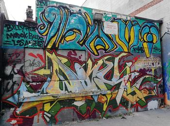 L’oeuvre est de type graffiti. Vous pouvez l’admirer dans la ville de Toronto en Canada et plus précisément ici : 460 Richmond St W, Toronto, ON M5V 1Y1, Canada.