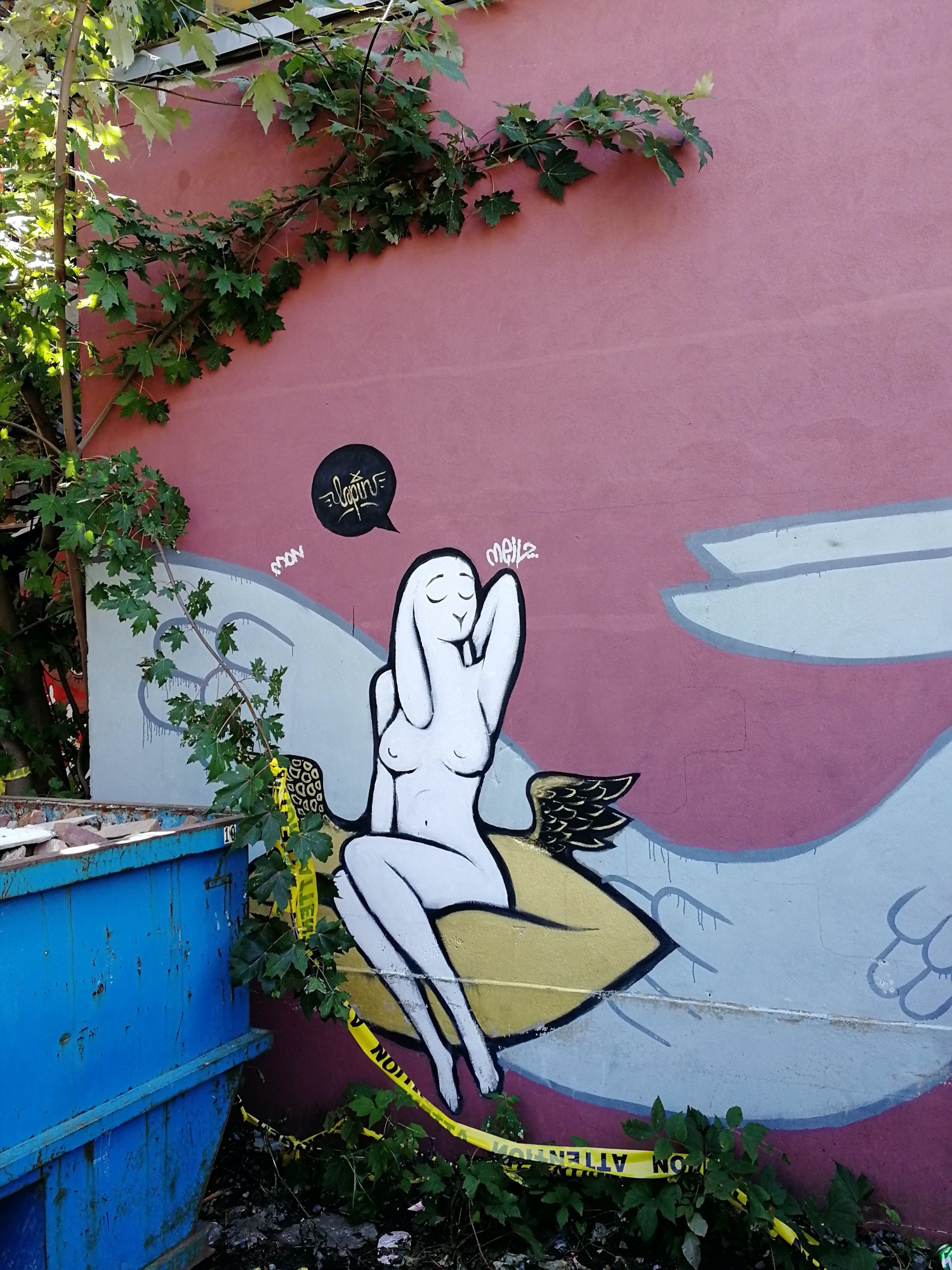 L’oeuvre est de type graffiti. Vous pouvez l’admirer dans la ville de Montréal en Canada et plus précisément ici : 2529 Avenue Letourneux, Montréal, QC H1V 2P3, Canada.