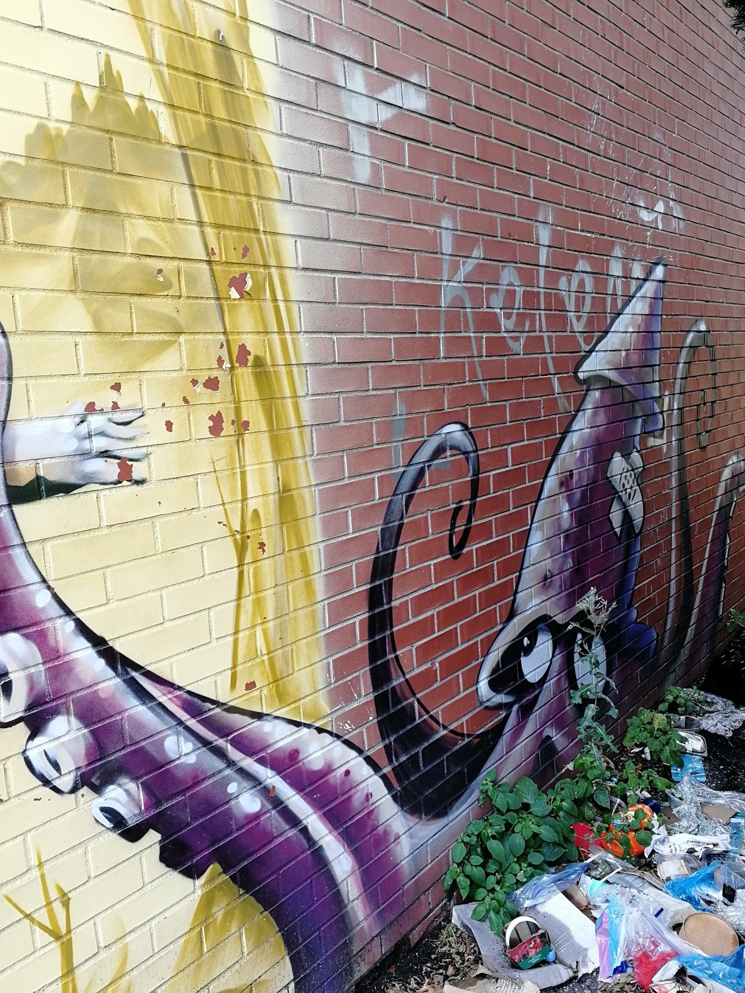 L’oeuvre est de type graffiti. Vous pouvez l’admirer dans la ville de Montréal en Canada et plus précisément ici : 4491 Rue Sainte-Catherine E, Montréal, QC H1V 1Y6, Canada.