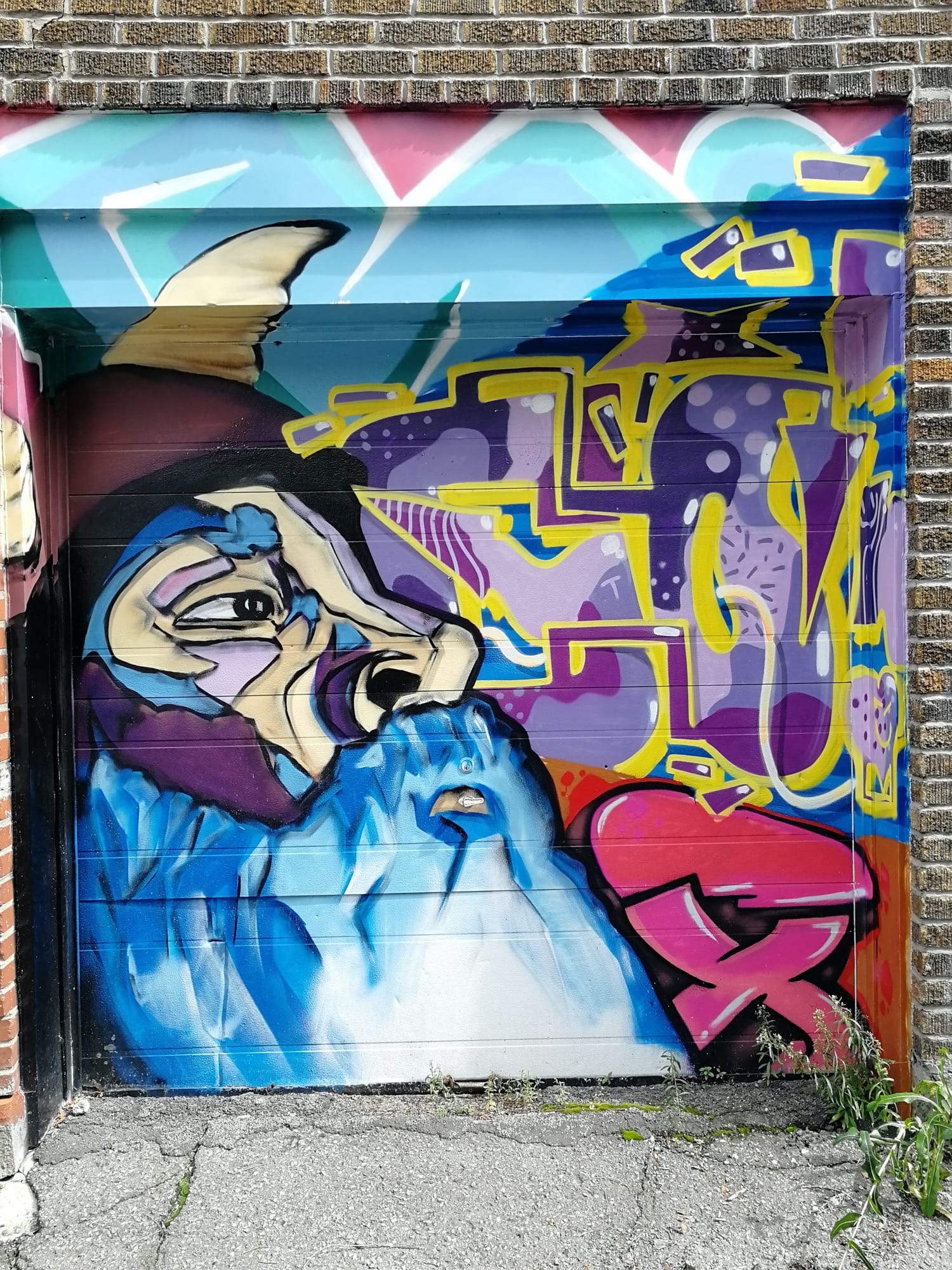 L’oeuvre est de type graffiti. Vous pouvez l’admirer dans la ville de Montréal en Canada et plus précisément ici : 1461 Avenue de la Salle, Montréal, QC H1V 2J6, Canada.