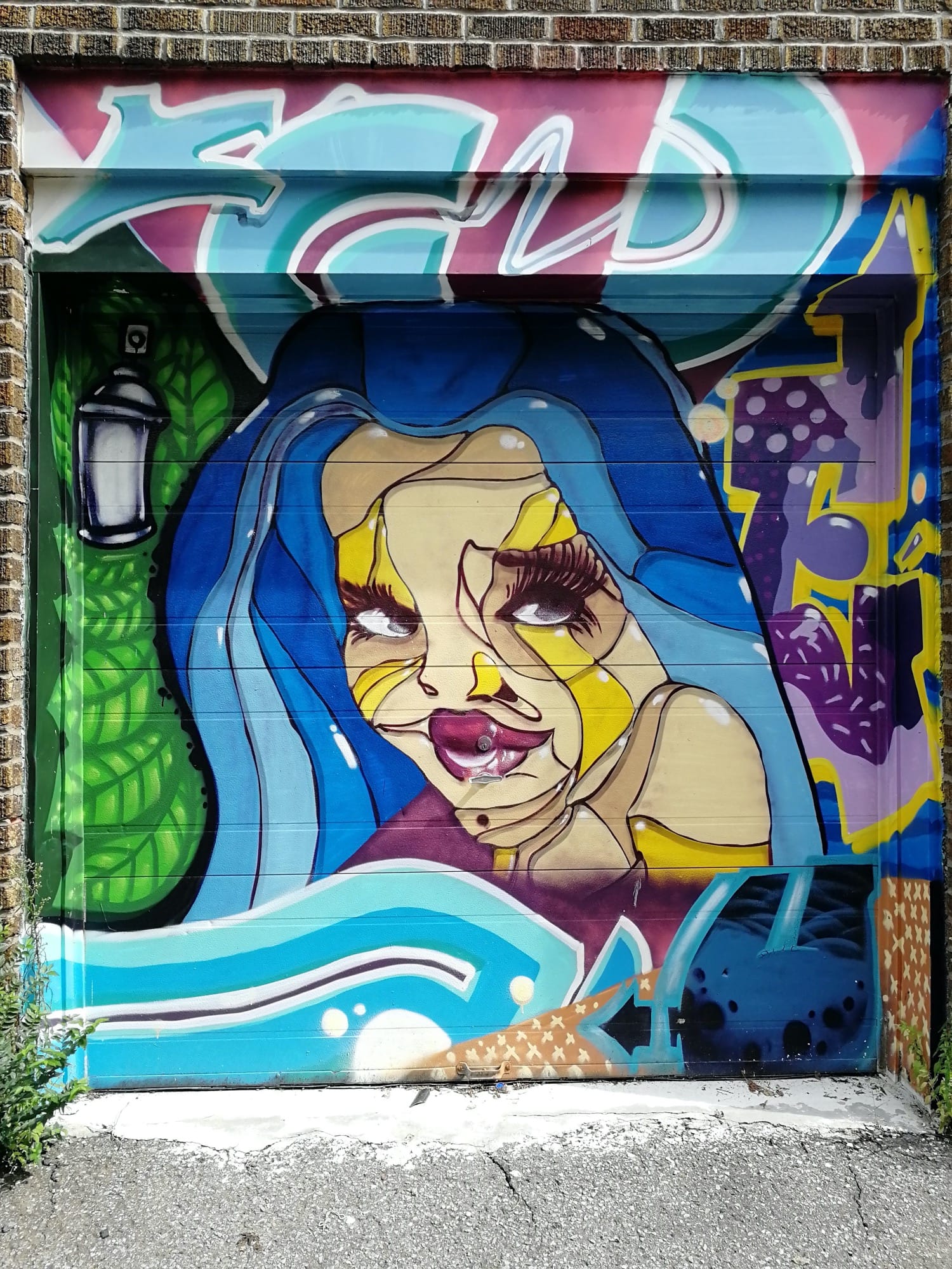 L’oeuvre est de type graffiti. Vous pouvez l’admirer dans la ville de Montréal en Canada et plus précisément ici : 1461 Avenue de la Salle, Montréal, QC H1V 2J6, Canada.