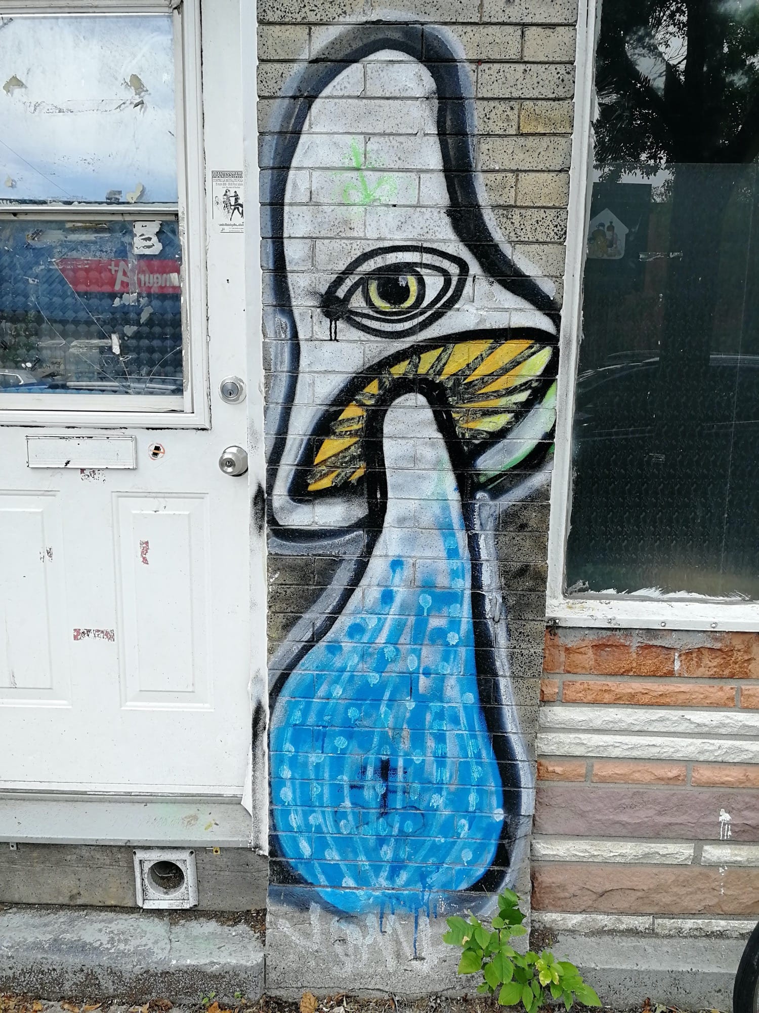 L’oeuvre est de type graffiti. Vous pouvez l’admirer dans la ville de Montréal en Canada et plus précisément ici : 4279 Rue la Fontaine, Montréal, QC H1V 1N7, Canada.