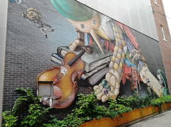 L’oeuvre est de type graffiti. Vous pouvez l’admirer dans la ville de Montréal en Canada et plus précisément ici : 1884 Avenue Desjardins, Montréal, QC H1V 2G9, Canada.