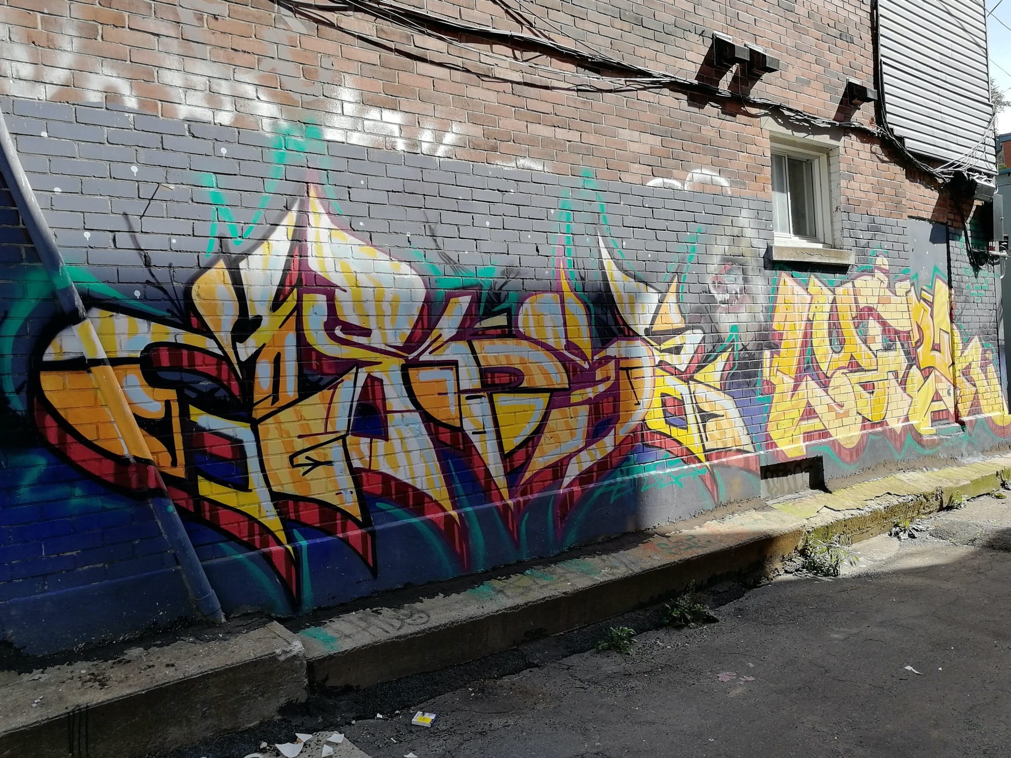 L’oeuvre est de type graffiti. Vous pouvez l’admirer dans la ville de Montréal en Canada et plus précisément ici : 1424 Avenue de la Salle, Montréal, QC H1V 2J5, Canada.