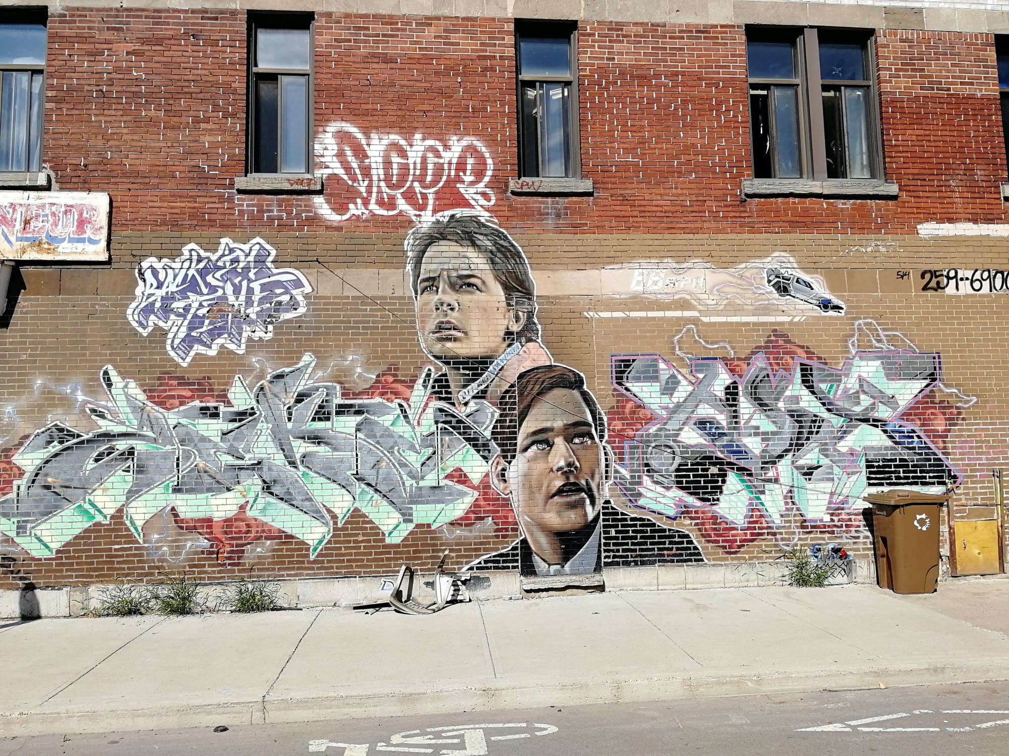 L’oeuvre est de type graffiti. Vous pouvez l’admirer dans la ville de Montréal en Canada et plus précisément ici : Sainte-Catherine / Pie-IX, Montréal, QC H1V 1X1, Canada.