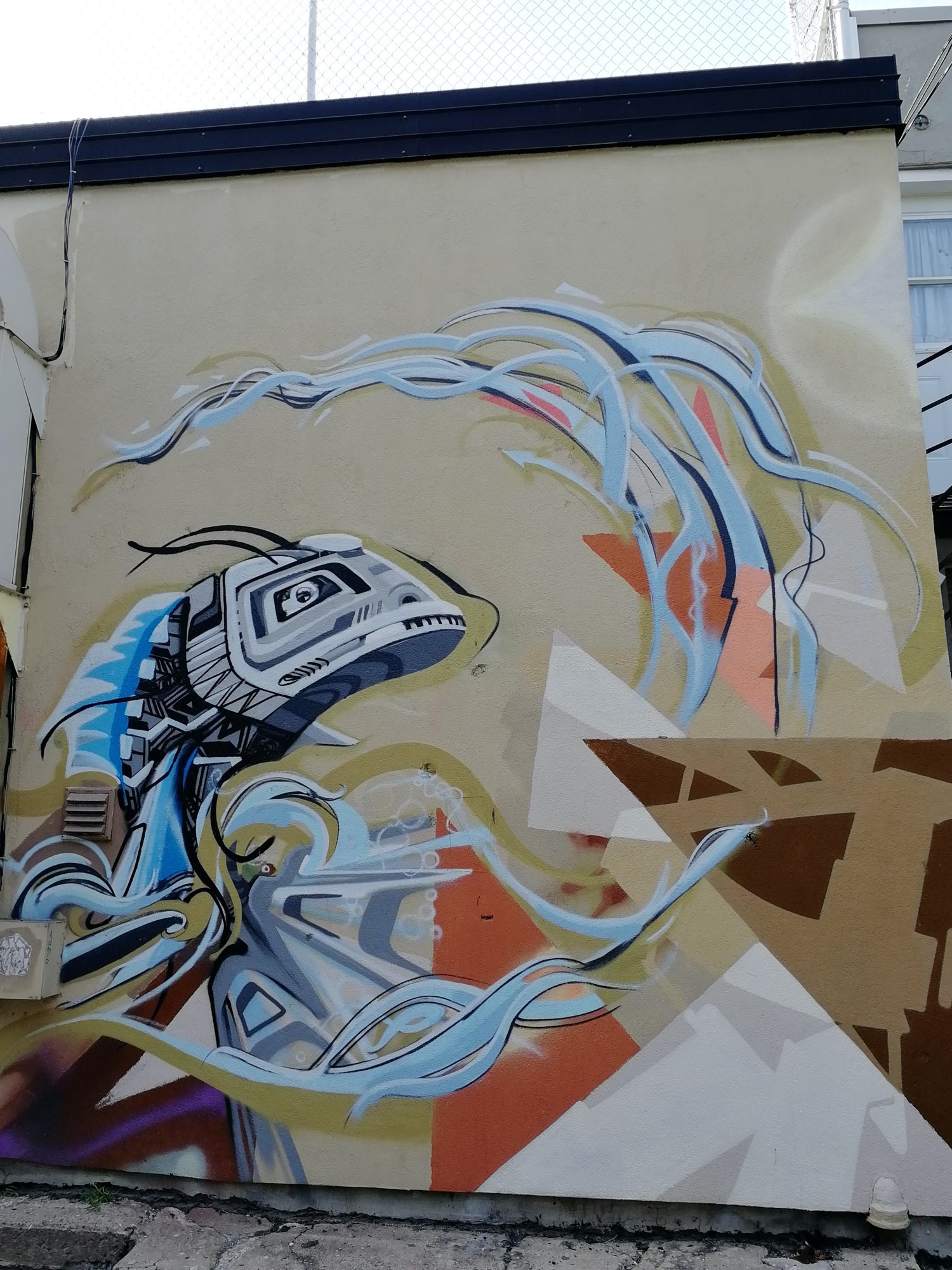 L’oeuvre est de type graffiti. Vous pouvez l’admirer dans la ville de Montréal en Canada et plus précisément ici : 1887 Avenue d'Orléans, Montréal, QC H1W 3R6, Canada.