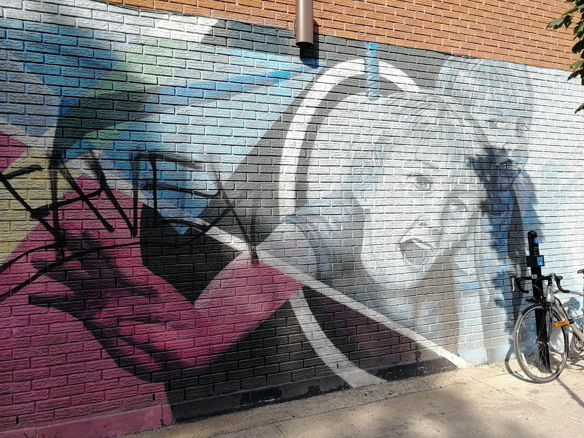 L’oeuvre est de type graffiti. Vous pouvez l’admirer dans la ville de Montréal en Canada et plus précisément ici : 3501 Rue Ontario E, Montréal, QC H1W 1R4, Canada.
