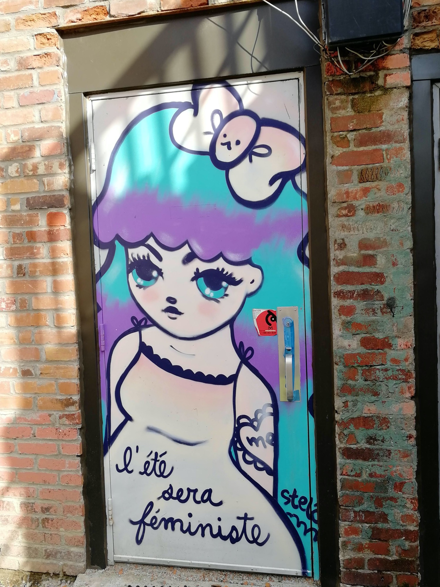 L’oeuvre est de type graffiti. Vous pouvez l’admirer dans la ville de Montréal en Canada et plus précisément ici : 3227 Rue Ontario E, Montréal, QC H1W 1P3, Canada.