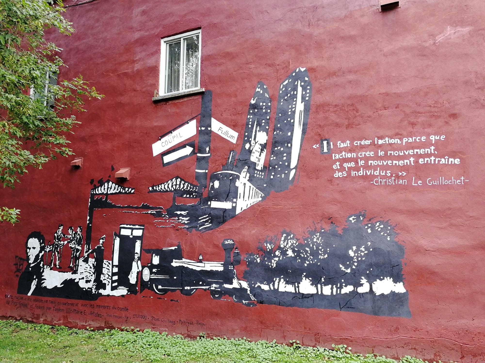 L’oeuvre est de type graffiti. Vous pouvez l’admirer dans la ville de Montréal en Canada et plus précisément ici : 2372 Rue Coupal, Montréal, QC H2K 1Y2, Canada.