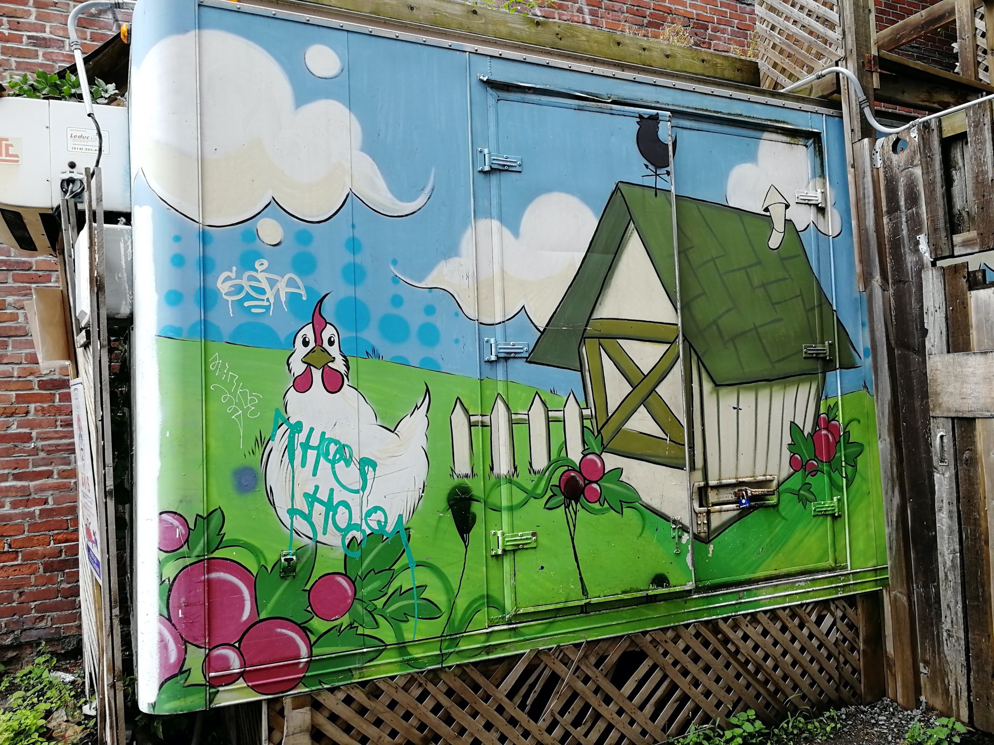 L’oeuvre est de type graffiti. Vous pouvez l’admirer dans la ville de Montréal en Canada et plus précisément ici : 2359 Rue Ontario E, Montréal, QC H2K 1W2, Canada.