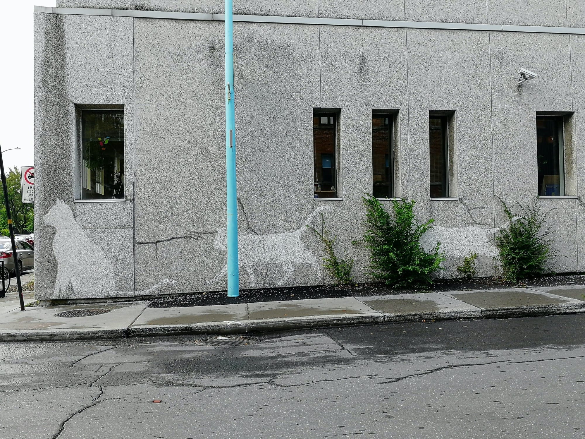 L’oeuvre est de type graffiti. Vous pouvez l’admirer dans la ville de Montréal en Canada et plus précisément ici : 2163 Rue Parthenais, Montréal, QC H2K 3T3, Canada.