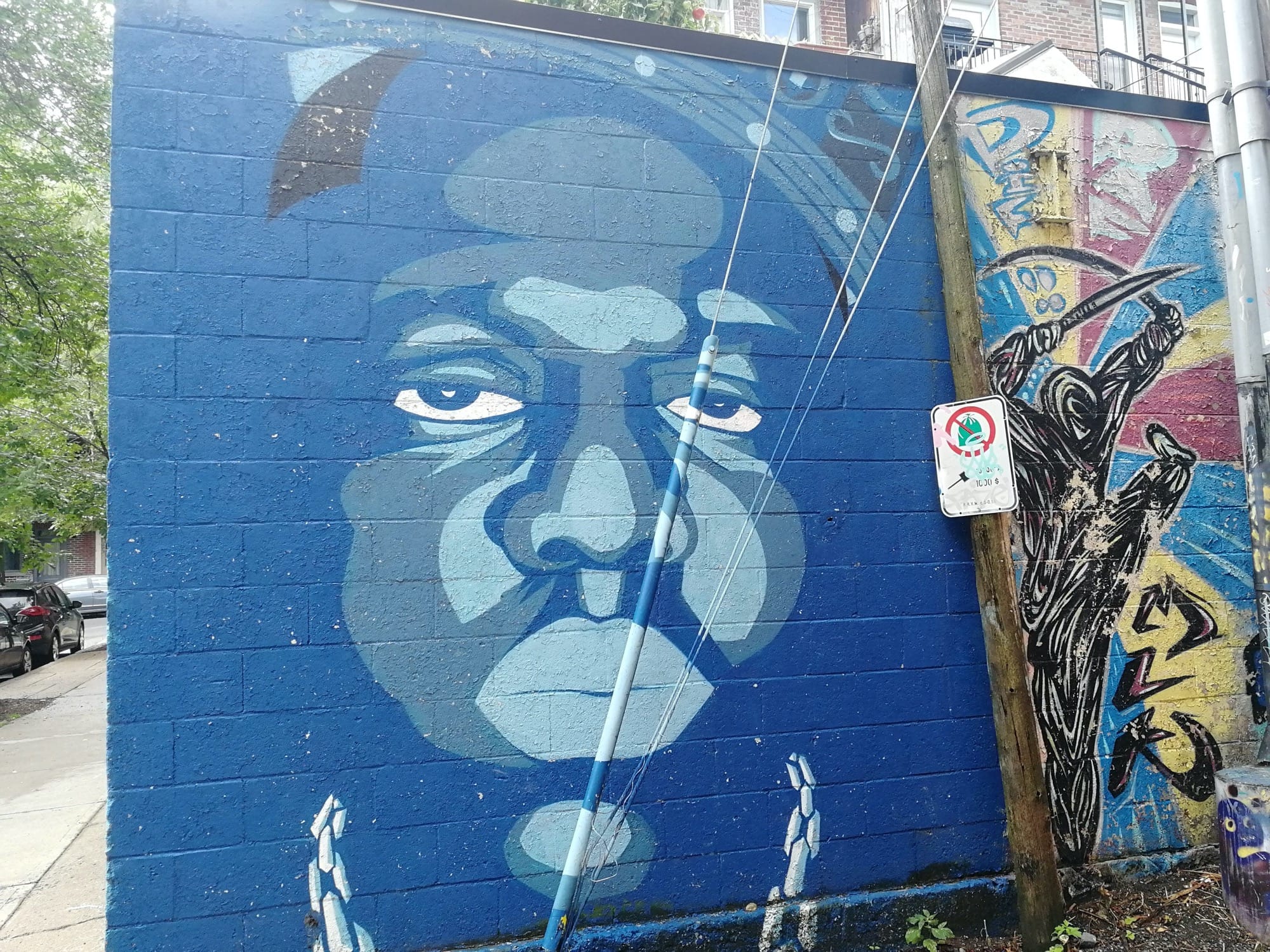 L’oeuvre est de type graffiti. Vous pouvez l’admirer dans la ville de Montréal en Canada et plus précisément ici : 1967 Rue de Rouen, Montréal, QC H2K 1K9, Canada.