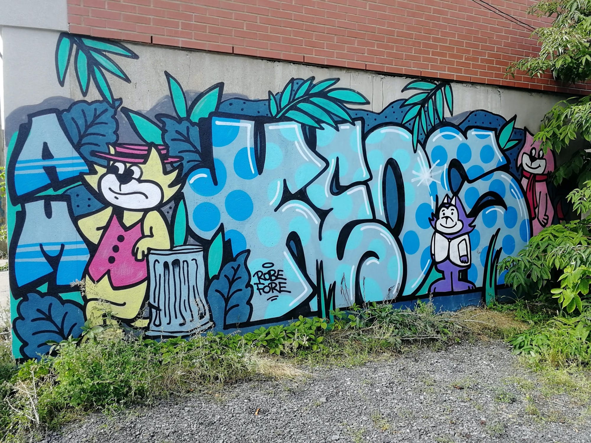 L’oeuvre est de type graffiti. Vous pouvez l’admirer dans la ville de Montréal en Canada et plus précisément ici : 4242 Rue Saint-Christophe, Montréal, QC H2J 2Y9, Canada.