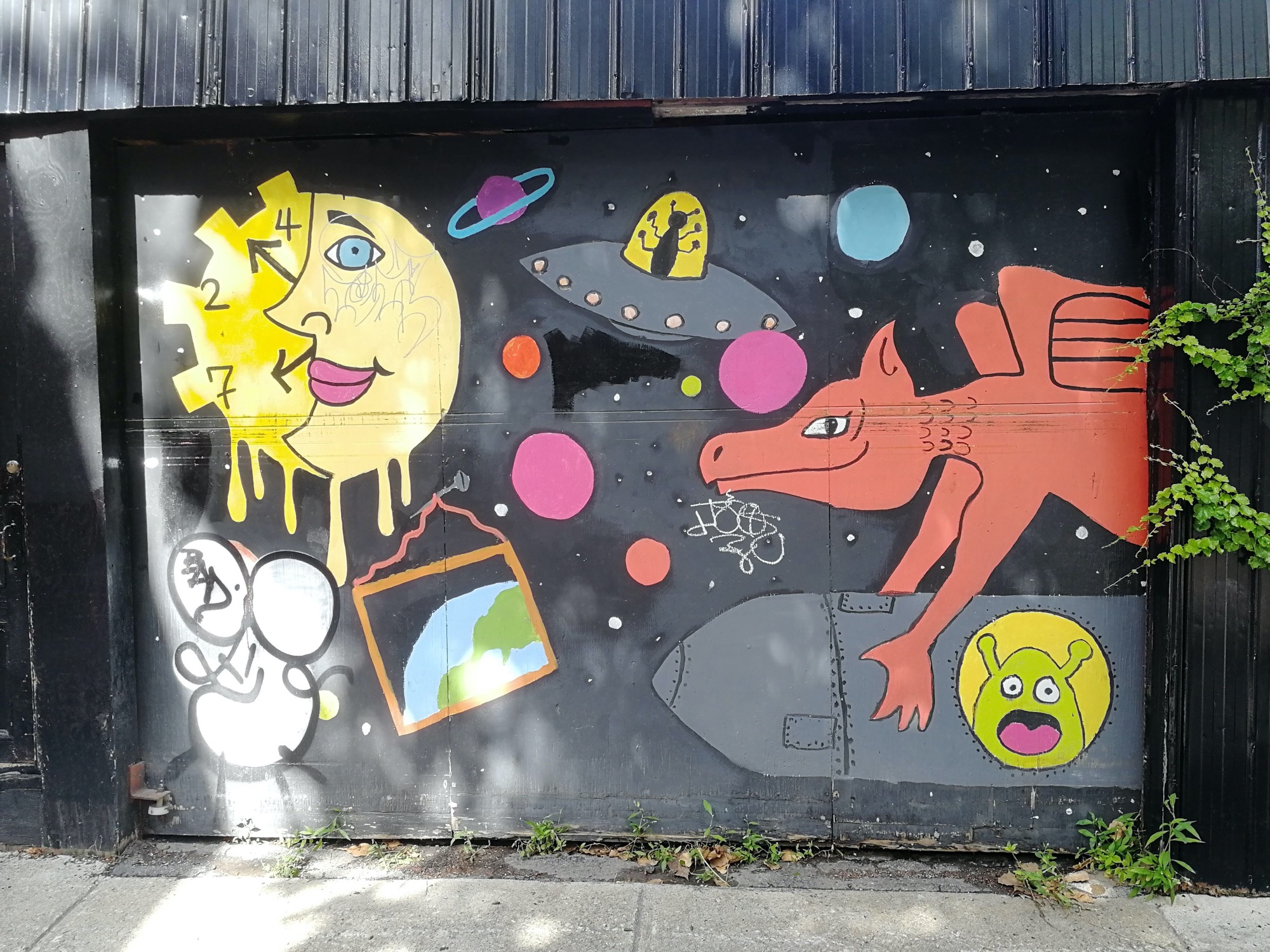 L’oeuvre est de type graffiti. Vous pouvez l’admirer dans la ville de Montréal en Canada et plus précisément ici : 4285 Avenue De Chateaubriand, Montréal, QC H2J 2W7, Canada.