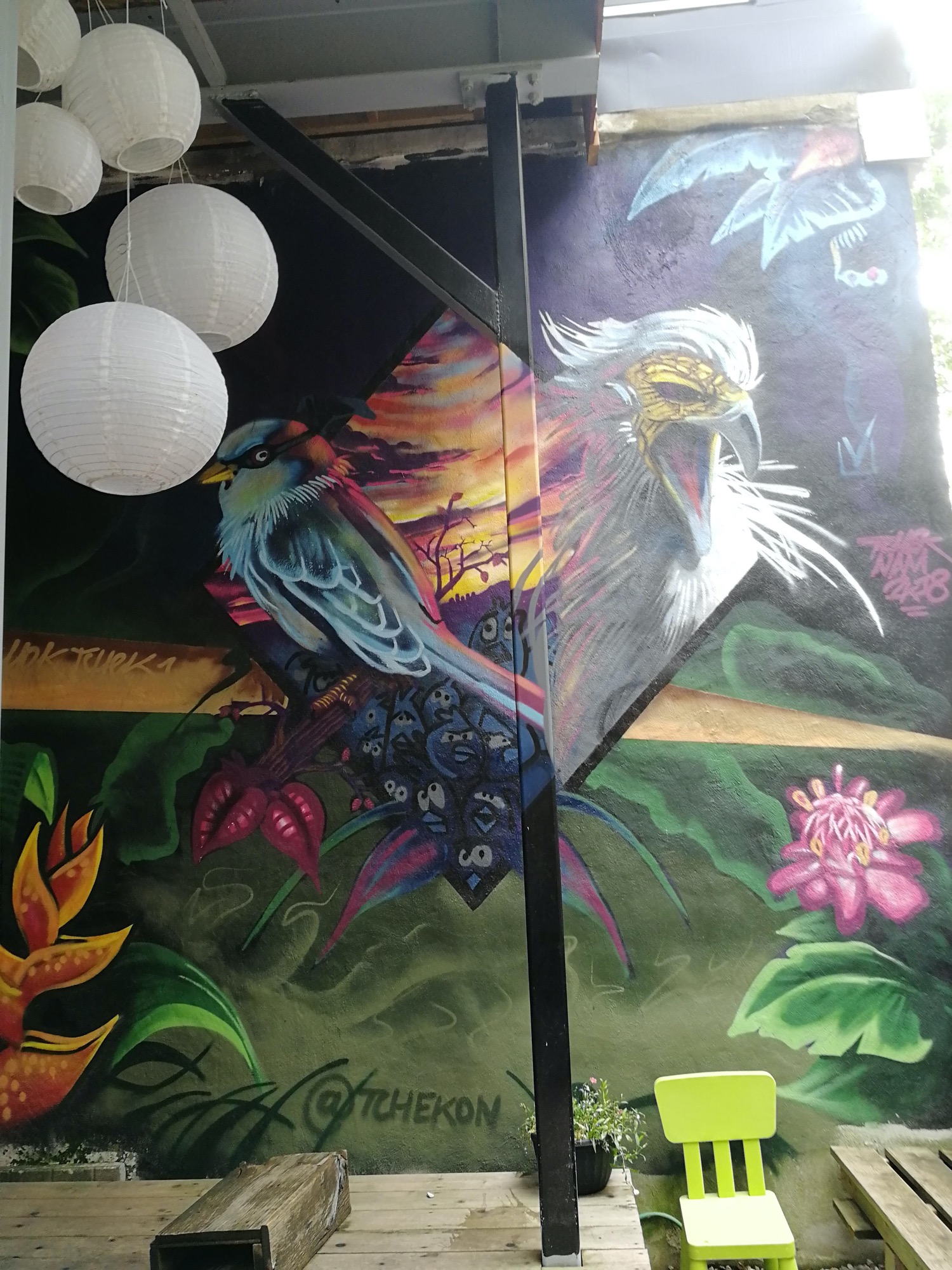 L’oeuvre est de type graffiti. Vous pouvez l’admirer dans la ville de Montréal en Canada et plus précisément ici : 912 Rue Marie-Anne, Montréal, QC H2J 2Z4, Canada.