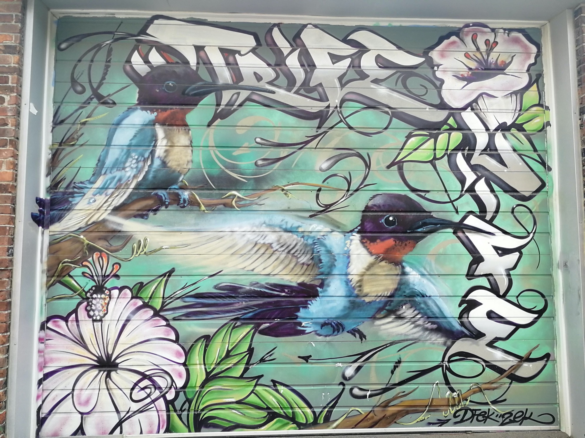 L’oeuvre est de type graffiti. Vous pouvez l’admirer dans la ville de Montréal en Canada et plus précisément ici : 4472 D Rue de la Roche, Montréal, QC H2J 3J1, Canada.
