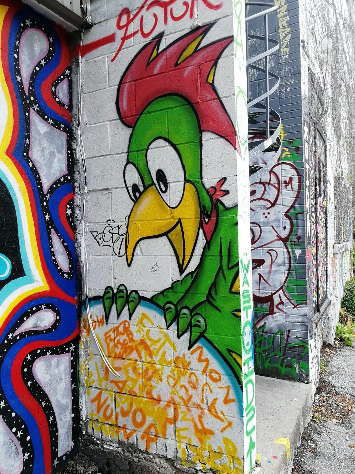 L’oeuvre est de type graffiti. Vous pouvez l’admirer dans la ville de Montréal en Canada et plus précisément ici : 1126 Avenue du Mont-Royal E, Montréal, QC H2J 1X8, Canada.
