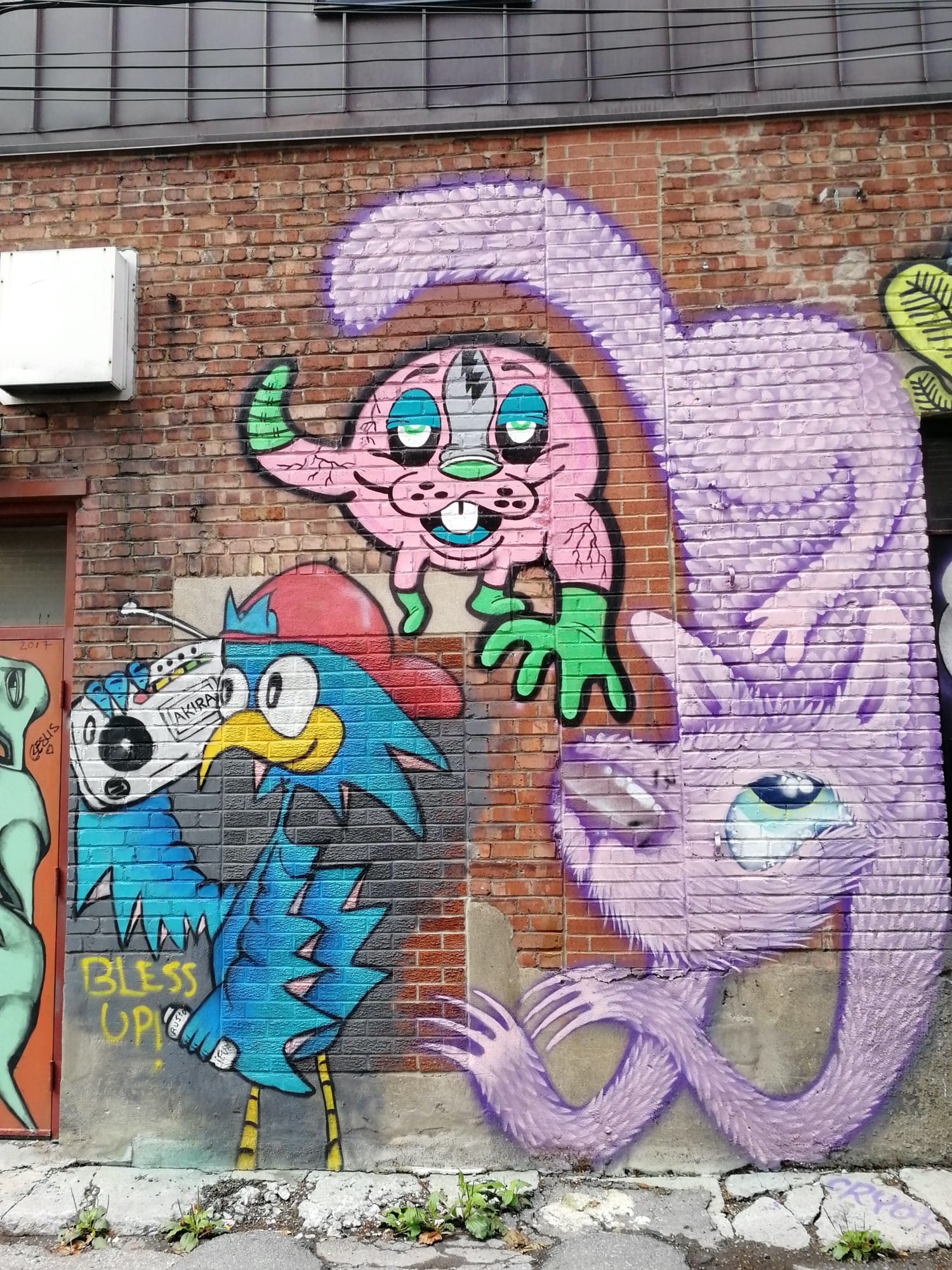 L’oeuvre est de type graffiti. Vous pouvez l’admirer dans la ville de Montréal en Canada et plus précisément ici : 1134 Avenue du Mont-Royal E, Montréal, QC H2J 1X8, Canada.