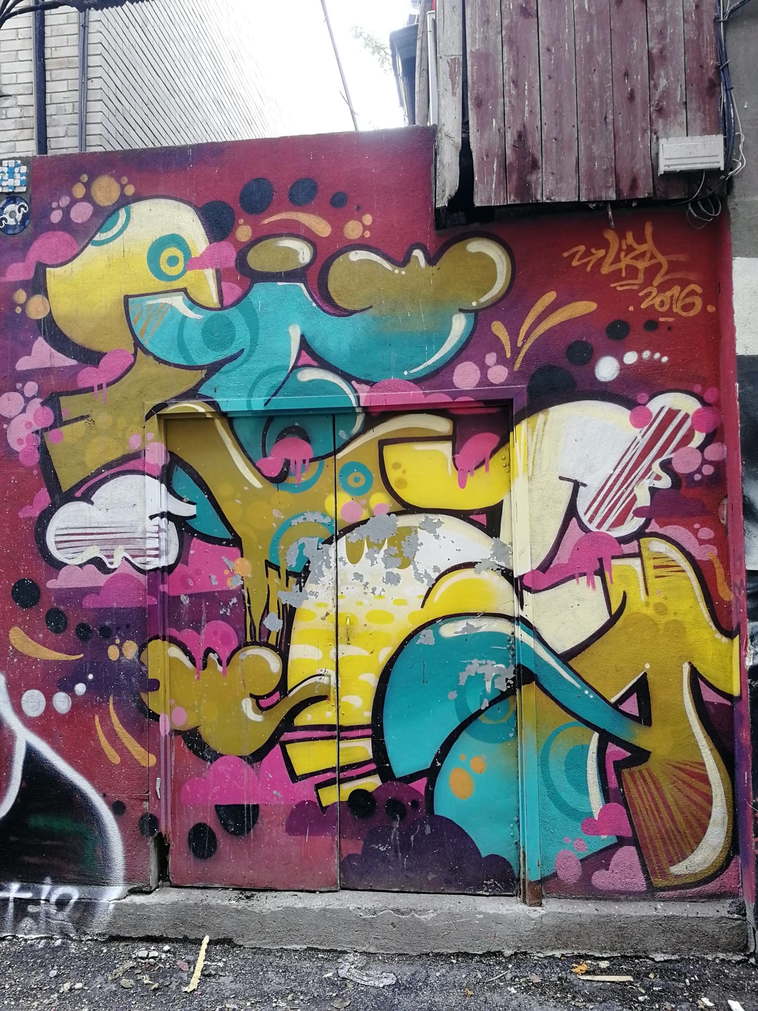 L’oeuvre est de type graffiti. Vous pouvez l’admirer dans la ville de Montréal en Canada et plus précisément ici : 360 Avenue du Mont-Royal E, Montréal, QC H2T 1R1, Canada.